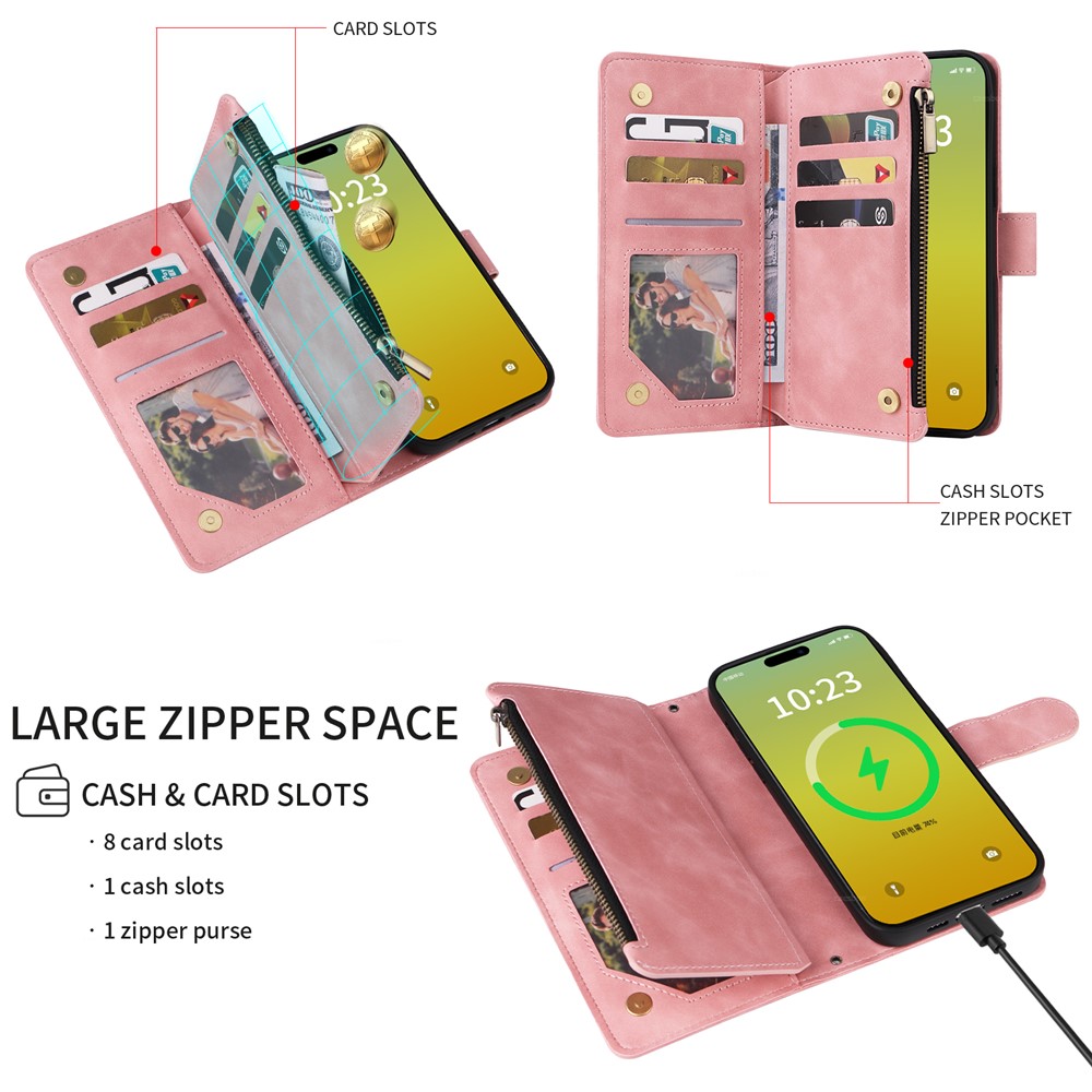 - Wallet Function Designed with multiple card slots and a cash holder, also provides a zipper pocket, making it easy to hold essential cards, coins and cash
