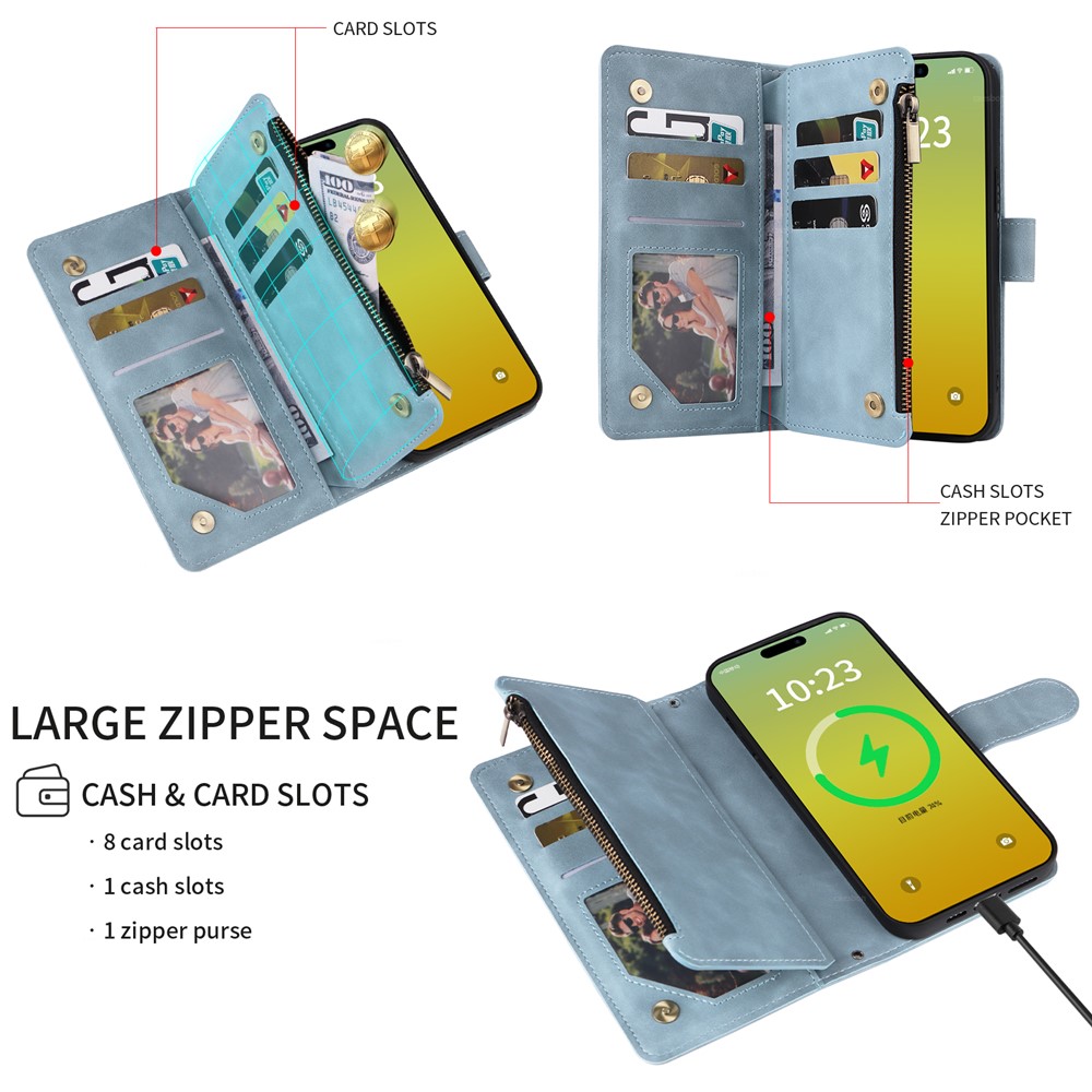 - Wallet Function Designed with multiple card slots and a cash holder, also provides a zipper pocket, making it easy to hold essential cards, coins and cash