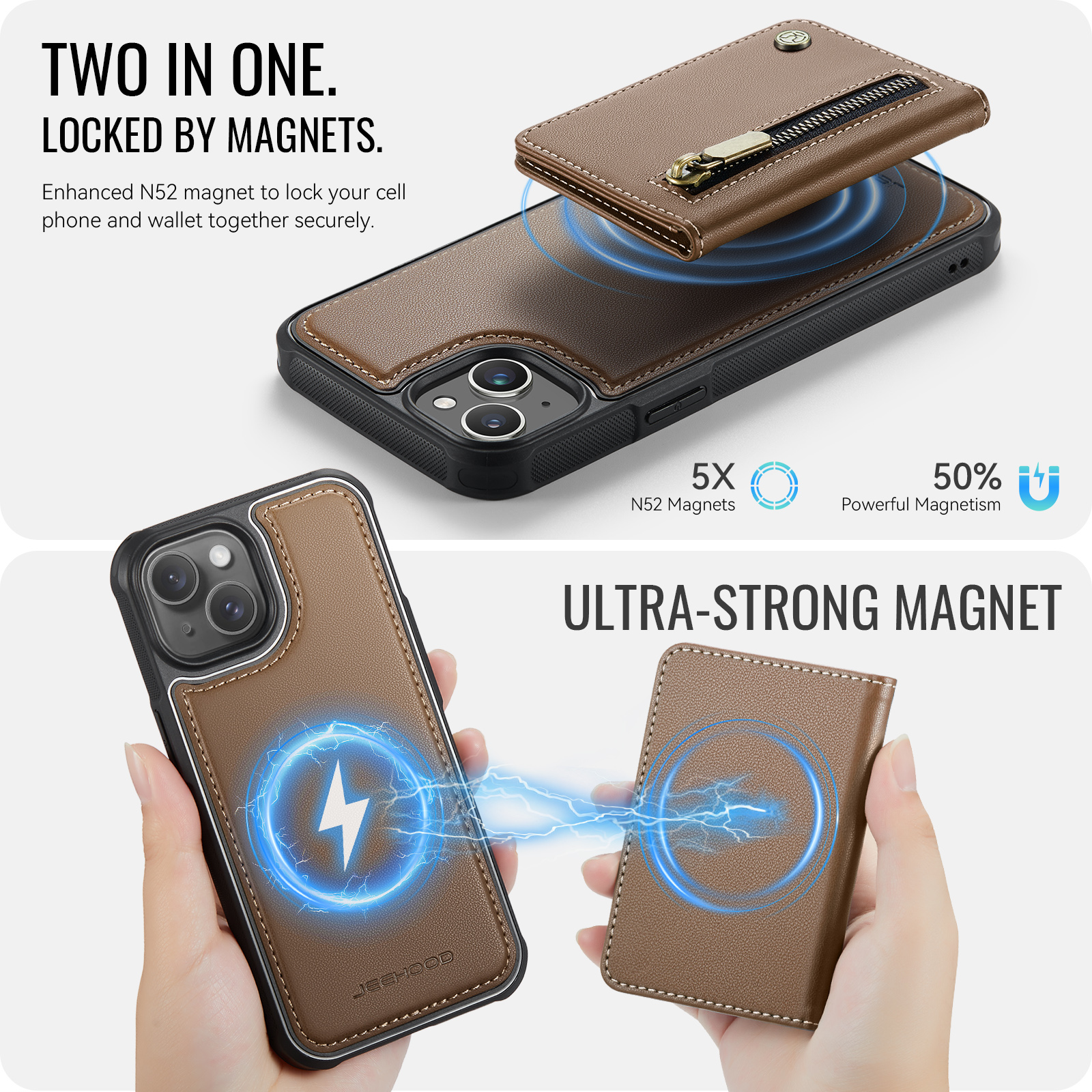- Detachable Magnetic Design The card wallet and phone case can be magnetically attached or detached, and can be used separately.