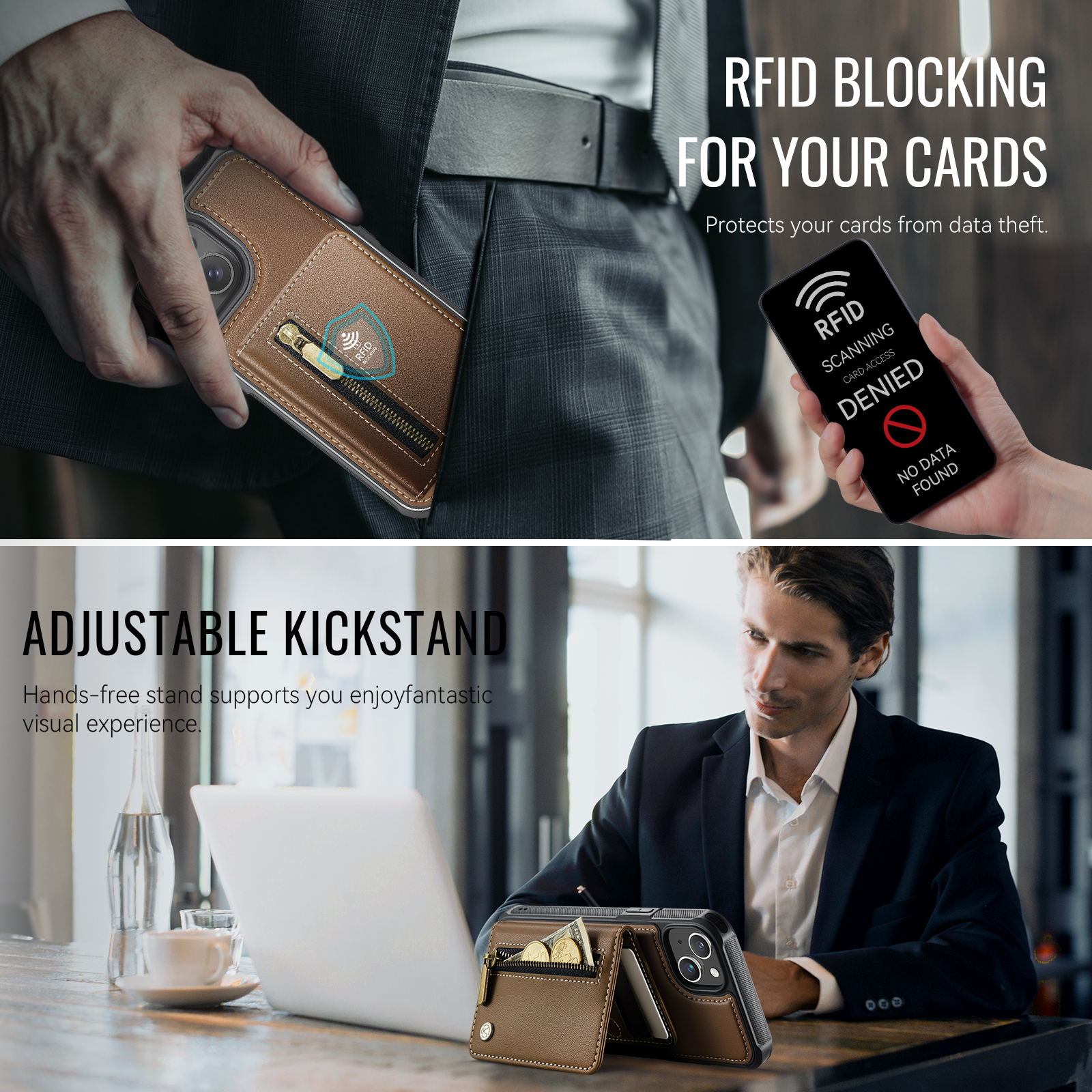 - RFID Blocking Integrated RFID blocking technology in card slots prevents unauthorized scanning and protects your personal information.