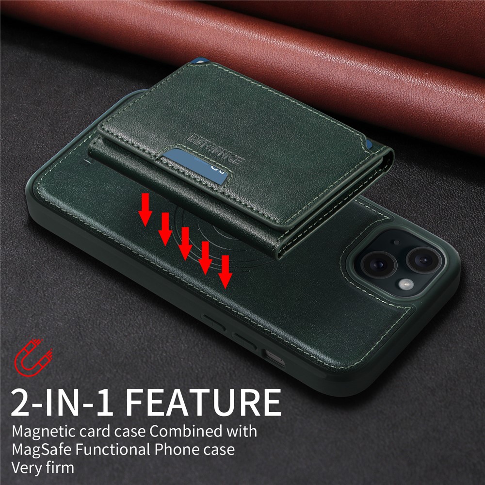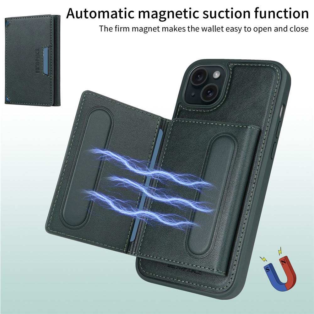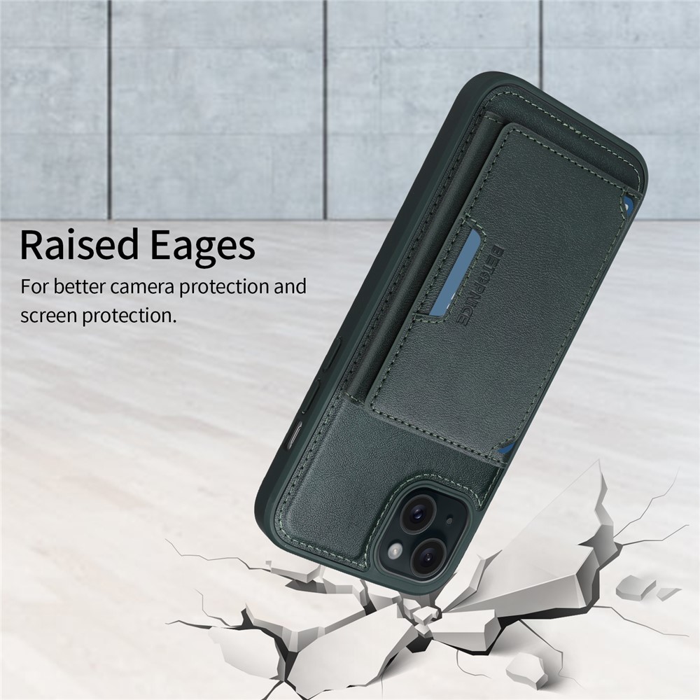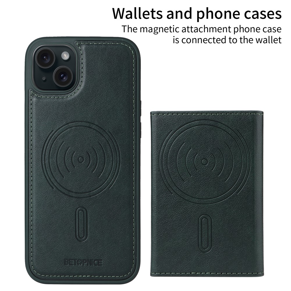 For iPhone 15 Plus Magnetic Case BETOPNICE Leather Phone Cover Kickstand with Detachable Card Bag - Green