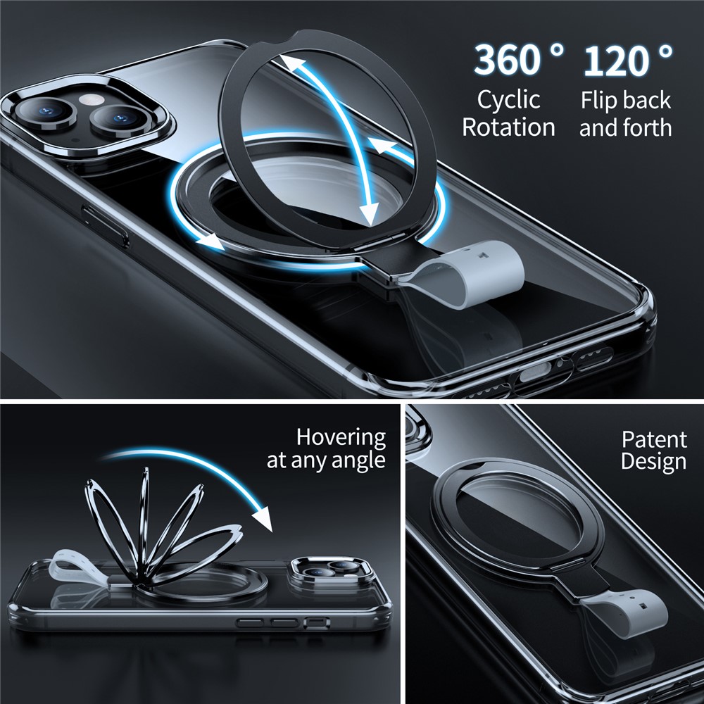 - 360-Degree Rotating Magnetic Kickstand: Features a 360-degree rotating ring kickstand with a 120-degree flip capability, allowing you to adjust the stand to any angle for the best hands-free viewing experience