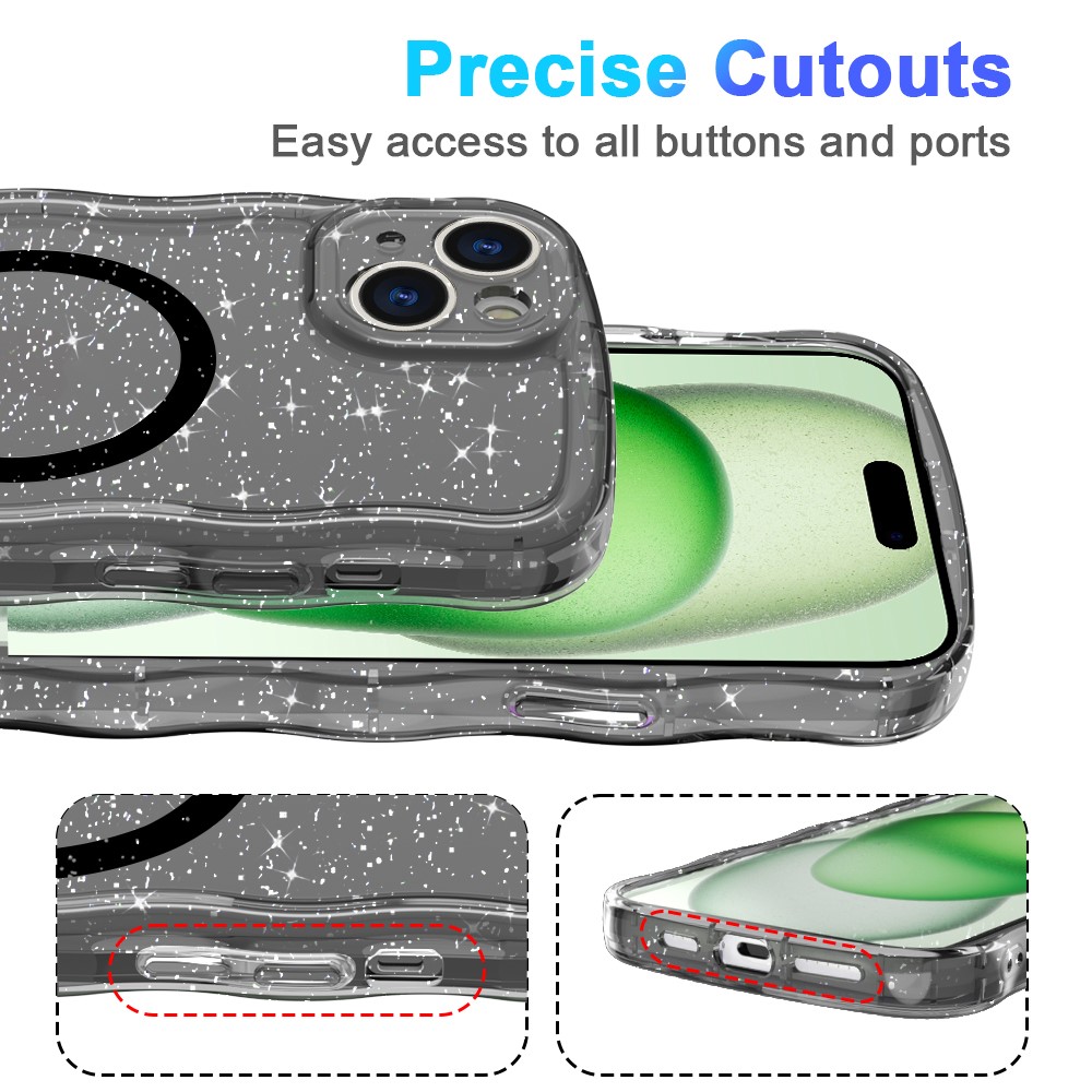 - Wave Edge Glitter Design Features a stylish wave-shaped frame with embedded glitter or vibrant patterns, adding a fashionable and eye-catching touch to your phone