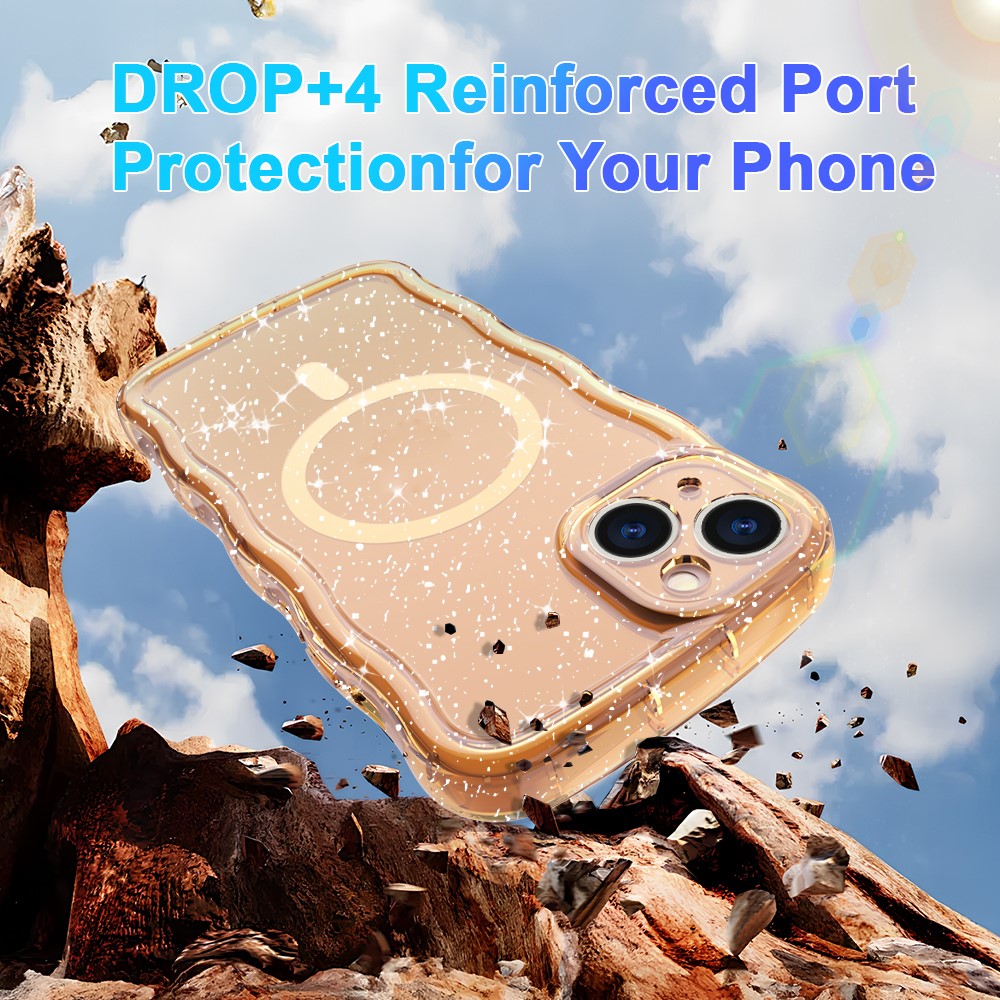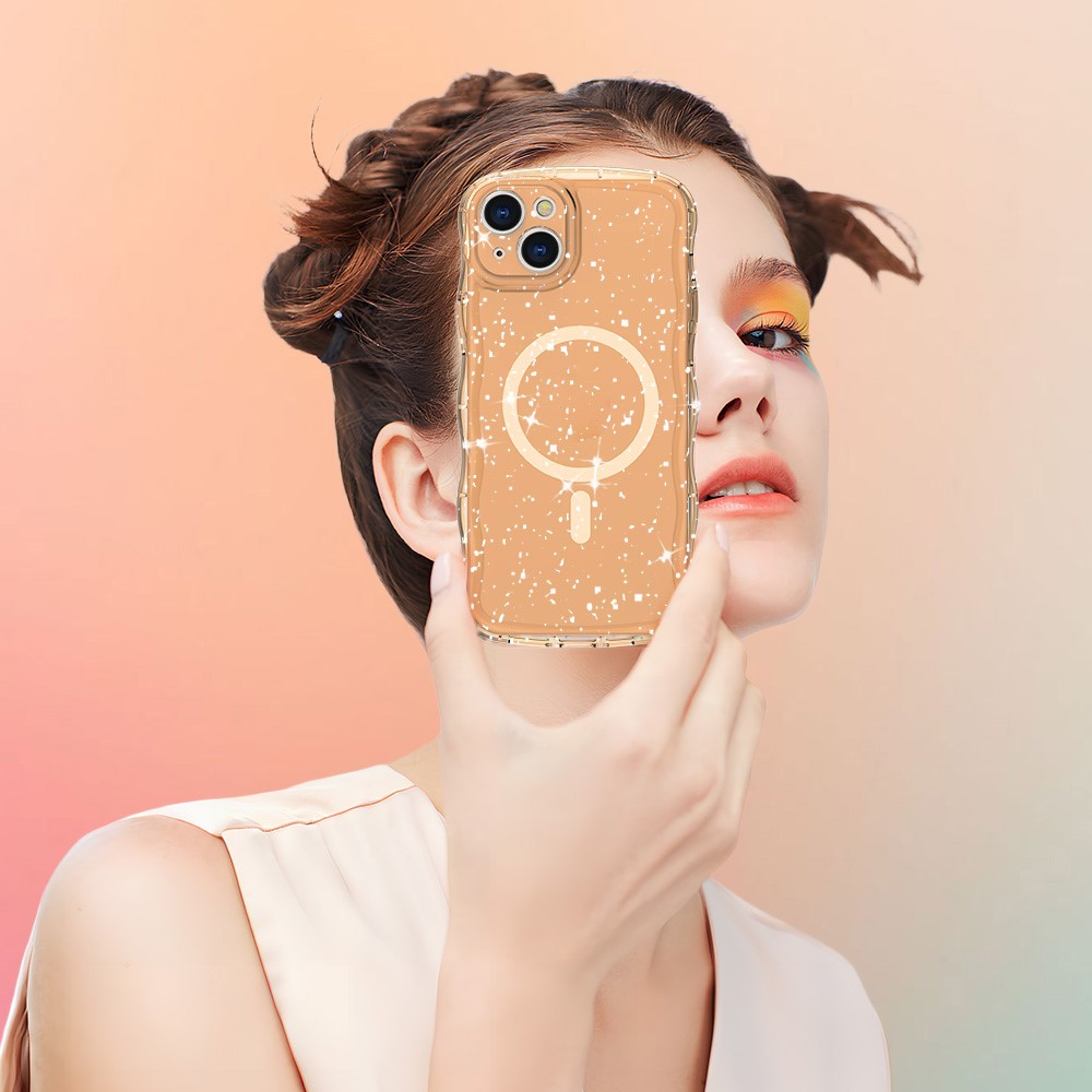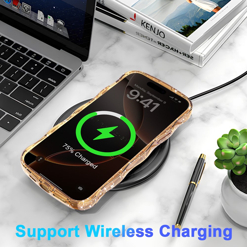 - Wave Edge Glitter Design Features a stylish wave-shaped frame with embedded glitter or vibrant patterns, adding a fashionable and eye-catching touch to your phone