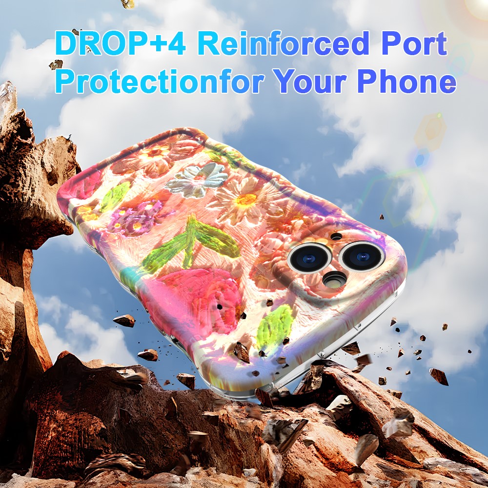 - Wave Edge Floral Design Features a unique wave-shaped frame paired with vibrant floral patterns, adding a fresh, elegant, and fashionable look to your phone
