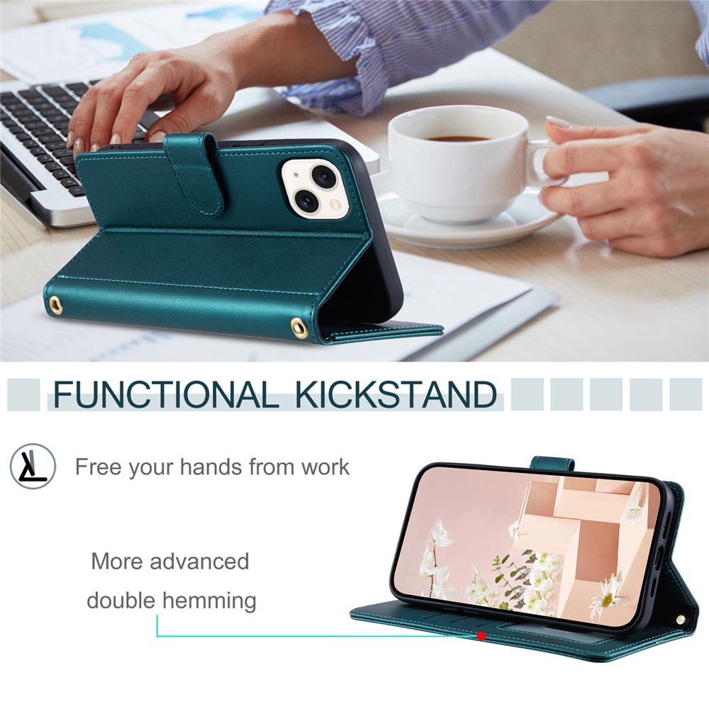 - Features an interior coin pocket, three card slots (including one for photos), and comes with a matching wrist strap