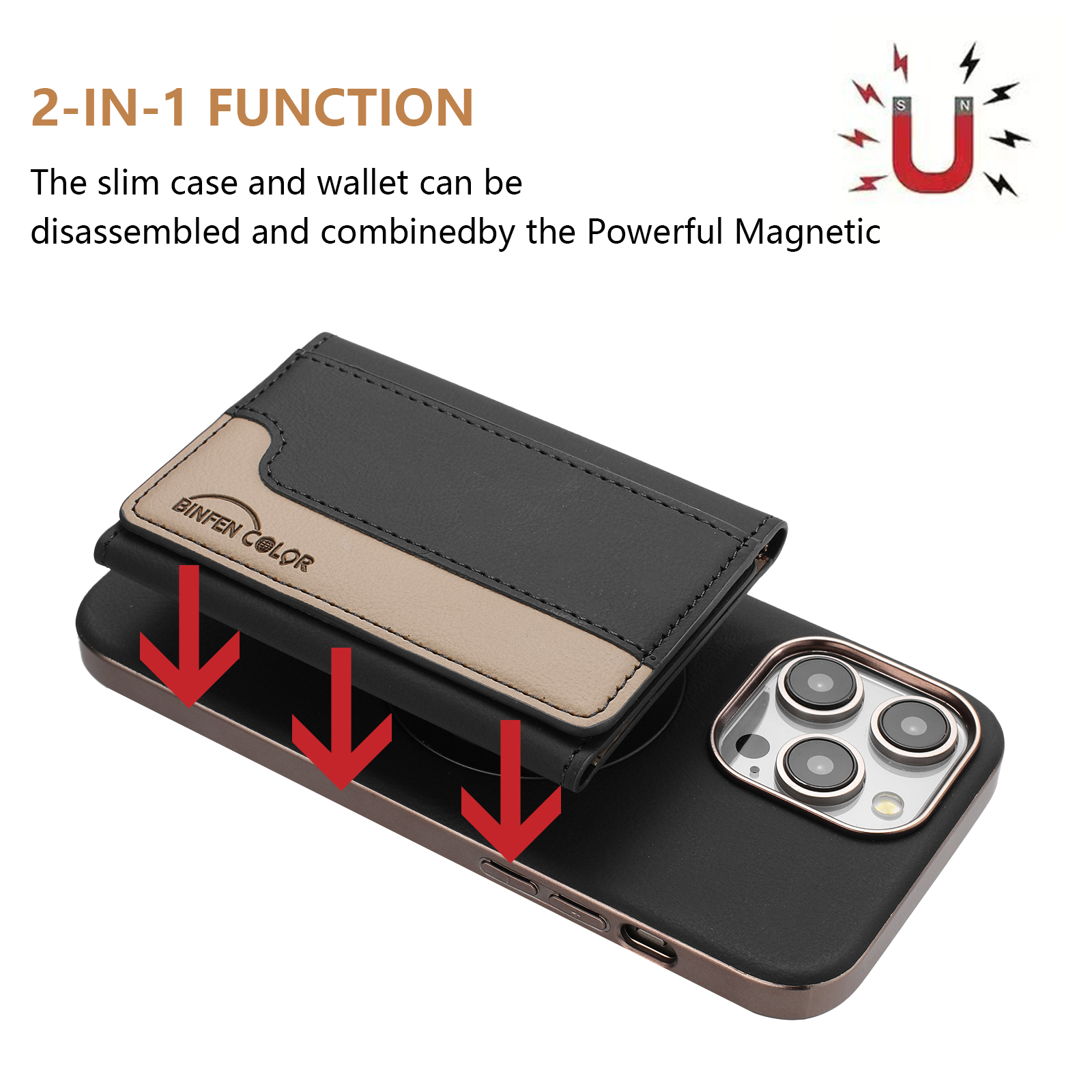 - Strong Magnetic Attachment The phone case and card holder are connected by powerful magnets, ensuring that the card holder stays firmly in place without the risk of falling off during use