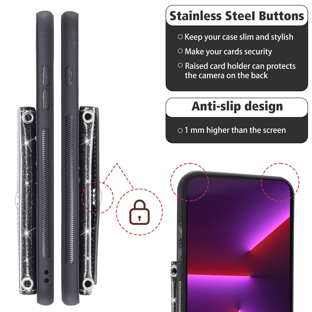 - Glamorous Glitter Design Features a TPU interior and shimmering glitter PU leather exterior that adds sparkle and style, perfect for fashion lovers who want both elegance and protection.