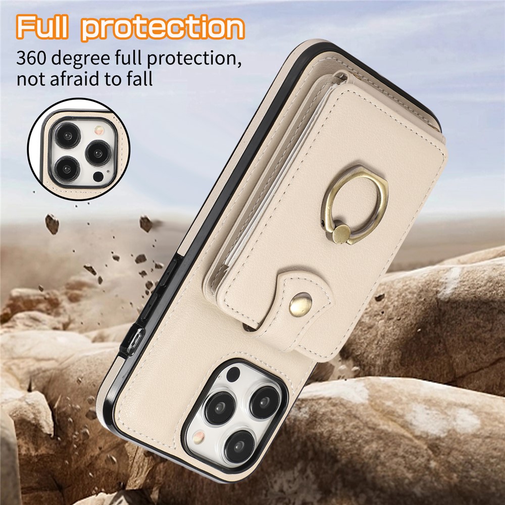 - Accordion-Style Card Holder The back of the case features an accordion-style cardholder with a magnetic button closure, perfect for storing essential cards and cash securely