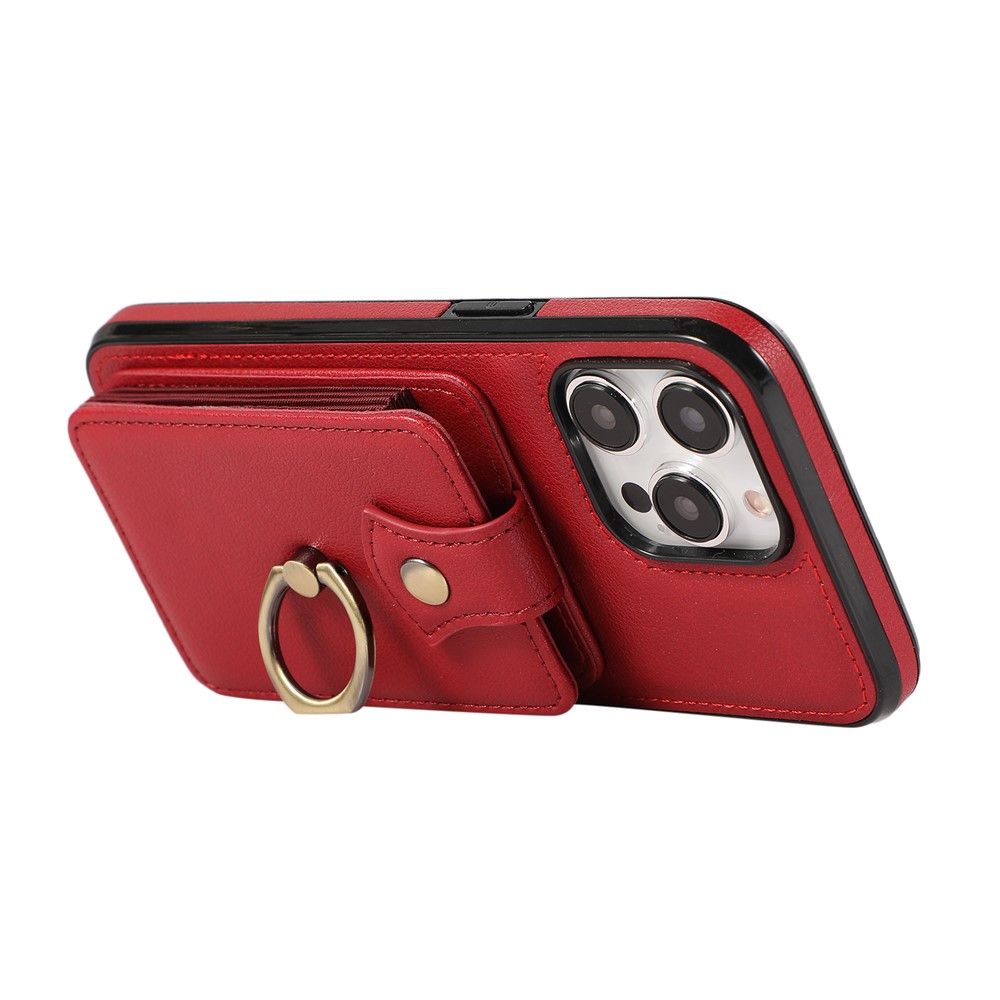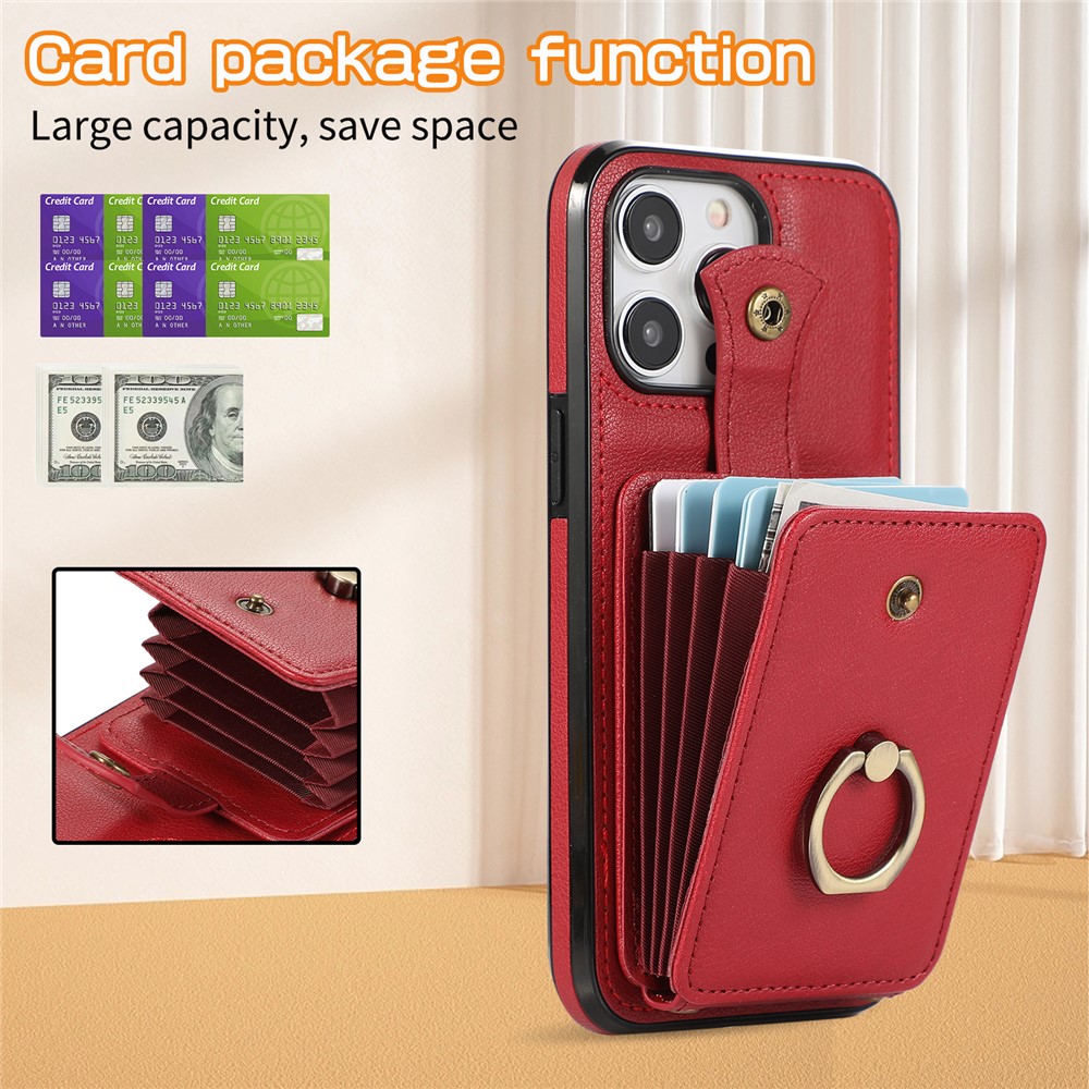 - Accordion-Style Card Holder The back of the case features an accordion-style cardholder with a magnetic button closure, perfect for storing essential cards and cash securely