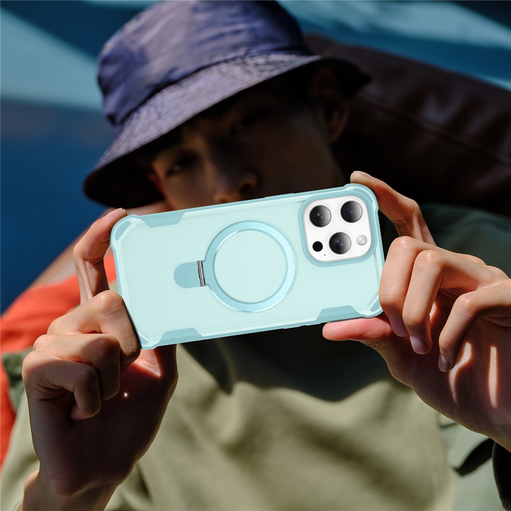 For iPhone 15 Pro Case Compatible with MagSafe Kickstand TPU + PC Shockproof Phone Back Cover - Lake Blue