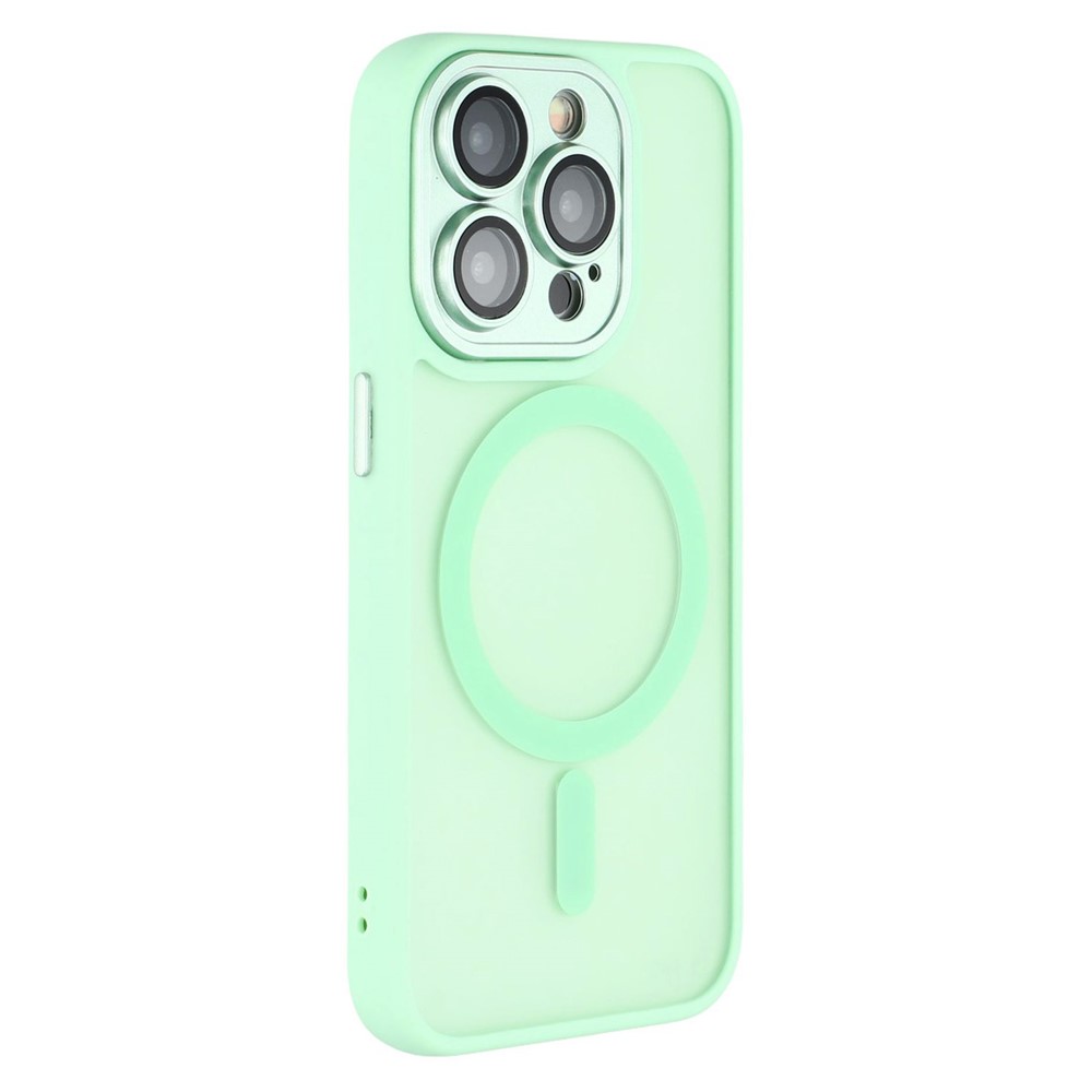 For iPhone 15 Pro Case Compatible with MagSafe PC + TPU Matte Phone Cover with Glass Lens Film – Light Green