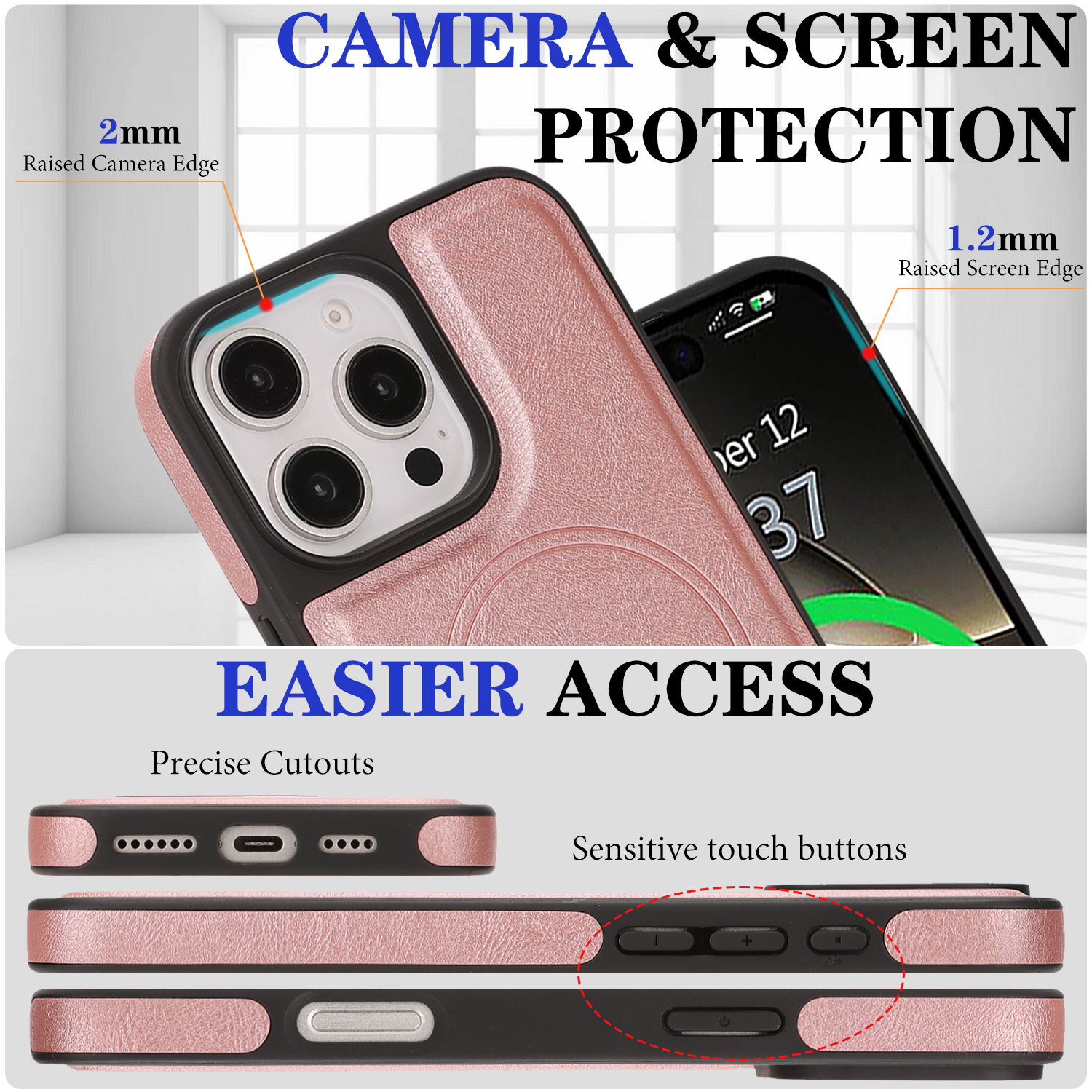 - Enhanced Screen and Lens Safety Raised edges provide 0.2mm protection for camera lenses and 1.2mm for the screen, safeguarding against surface contact and potential damage.