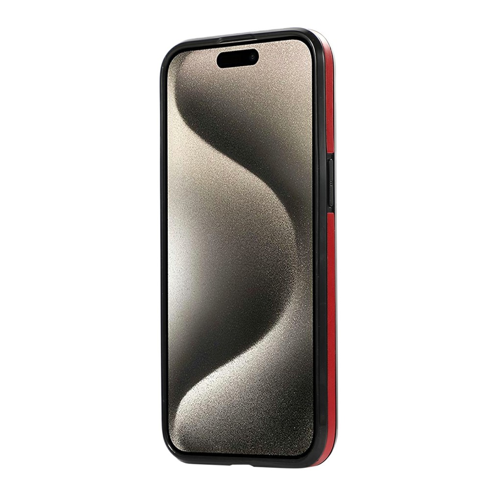 For iPhone 15 Pro Case Magnetic Kickstand PU Leather Coated PC + TPU Phone Cover – Red