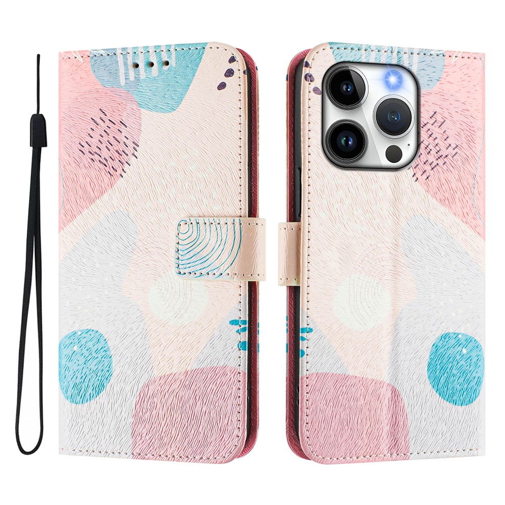 For iPhone 15 Pro Case Pattern Printing Wallet Phone Cover with Strap – Graffiti