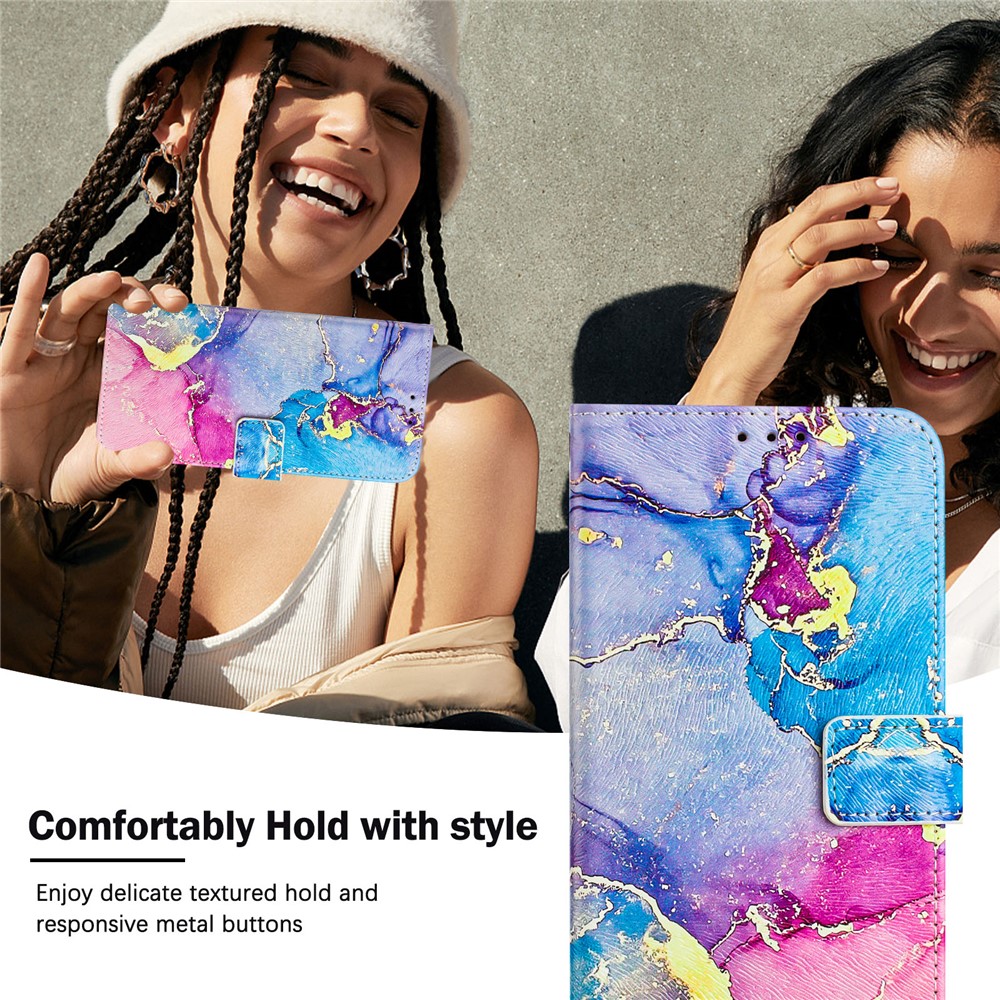 For iPhone 15 Pro Case Pattern Printing Wallet Phone Cover with Strap – Multicolor Marble
