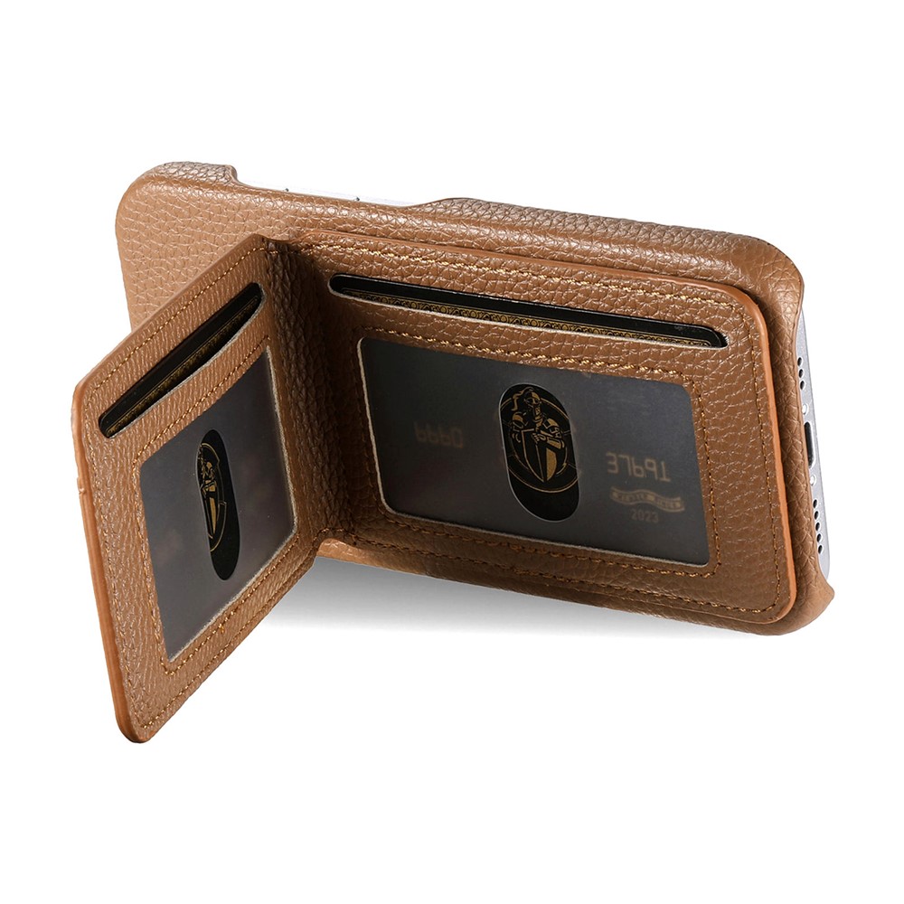- Hidden Card Slots Features two concealed vertical flip compartments with card windows, ideal for storing ID and credit cards securely