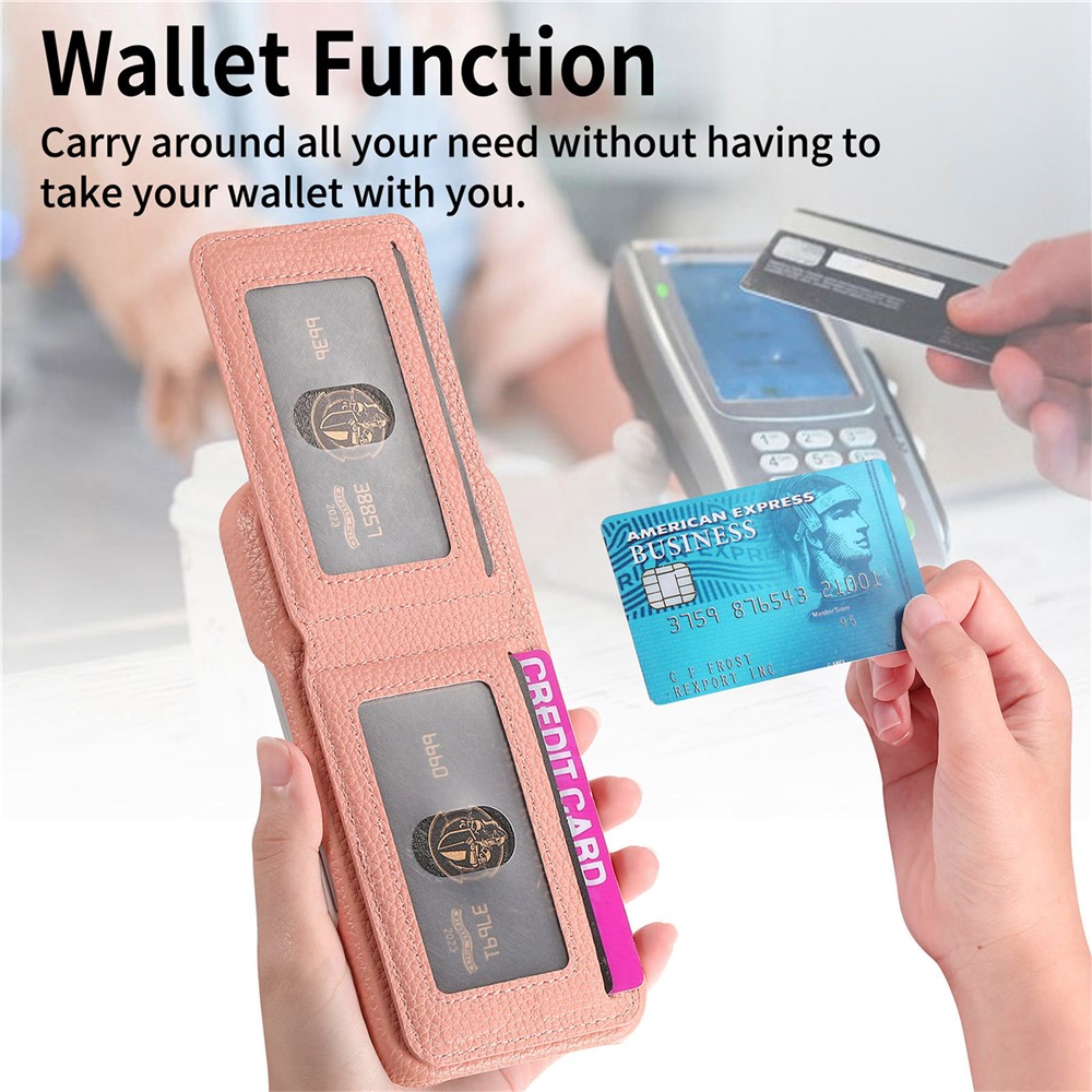 - Hidden Card Slots Features two concealed vertical flip compartments with card windows, ideal for storing ID and credit cards securely