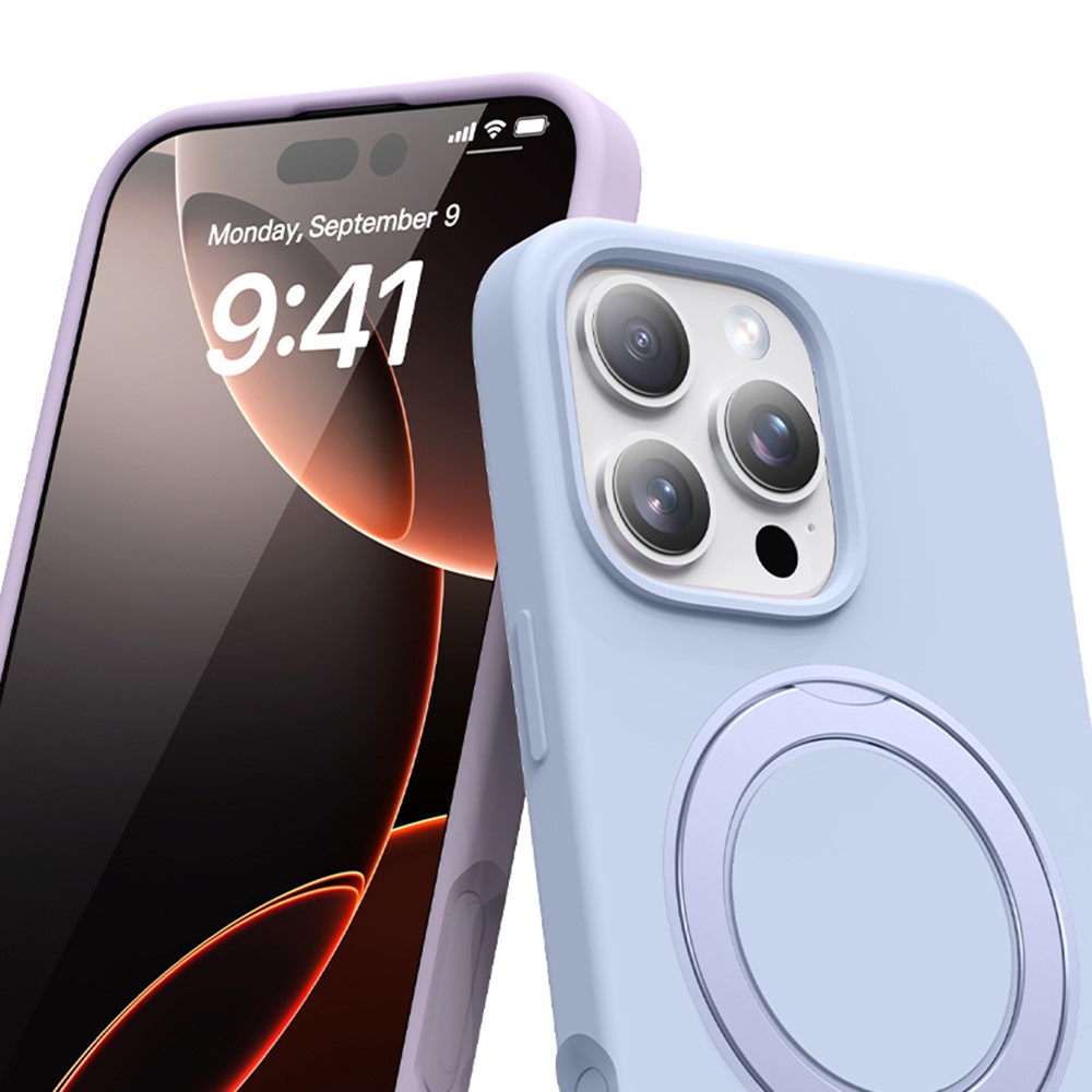 - 360° Rotating Kickstand The Integrated ring kickstand rotates freely and lies completely flush with the case when not in use. Offers a comfortable grip and supports hands-free viewing in both portrait and landscape modes