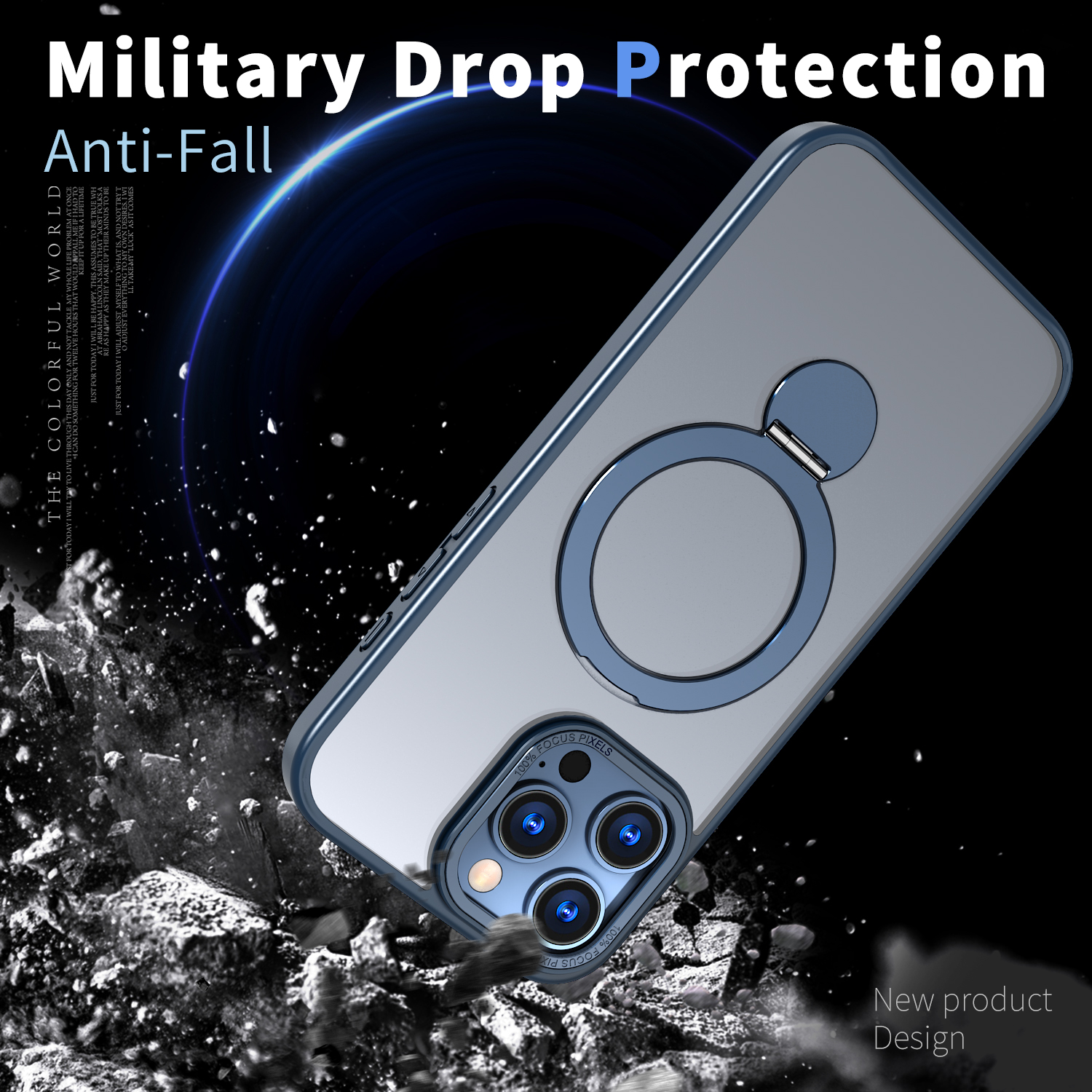 For iPhone 15 Pro Case Rotating Kickstand Skin-touch TPU + PC Phone Cover Compatible with MagSafe – Blue