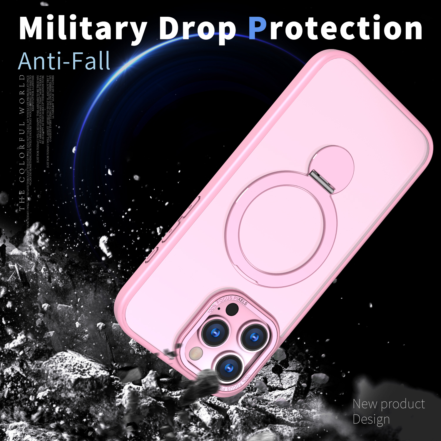 For iPhone 15 Pro Case Rotating Kickstand Skin-touch TPU + PC Phone Cover Compatible with MagSafe – Pink