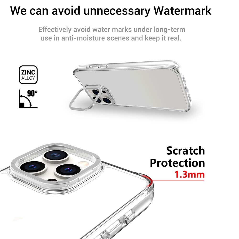 For iPhone 15 Pro Case Shockproof TPU + PC Phone Back Cover with Metal Lens Kickstand – Silver