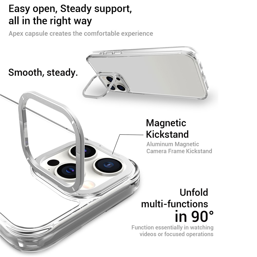 • Camera Frame Kickstand Metal lens kickstand with damping design allows free-angle adjustments (0-90°) for hands-free viewing, photography, or travel convenience