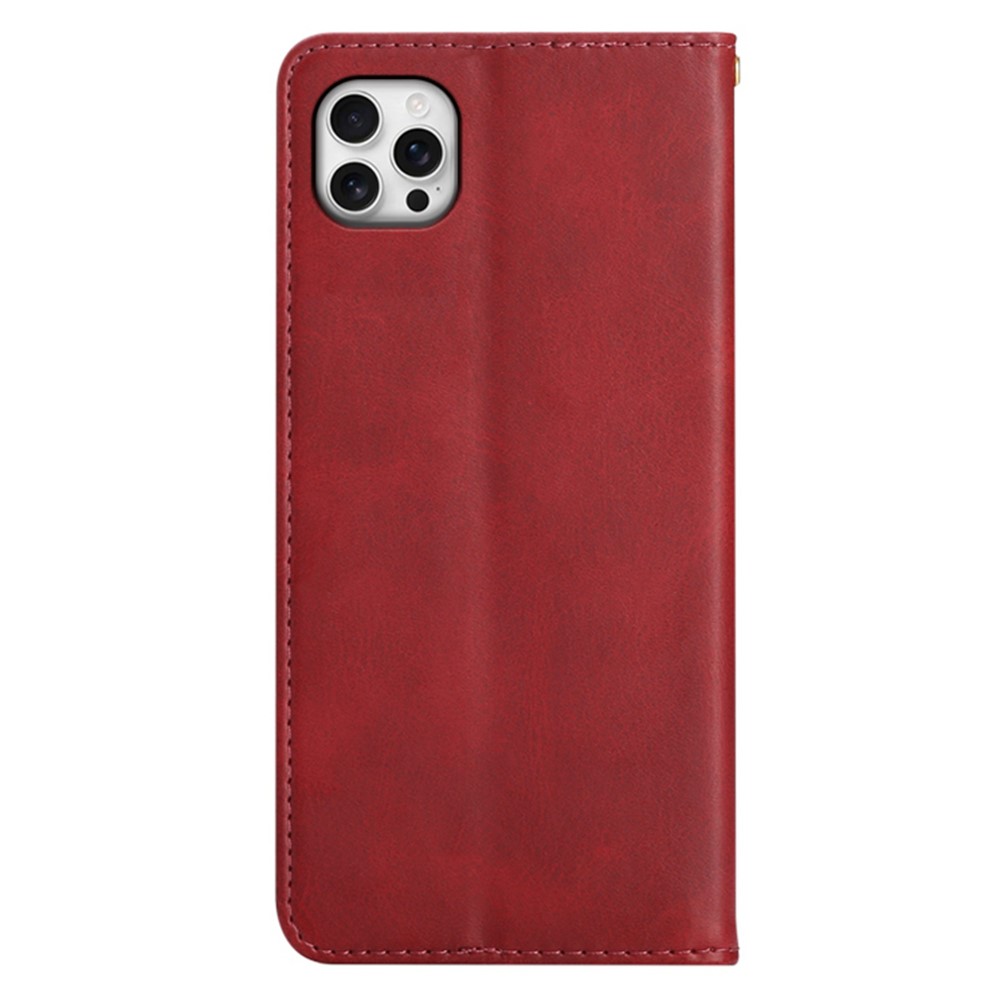 For iPhone 15 Pro Case Wallet Calf Texture Leather Phone Cover with Hidden Magnetic Closure - Red