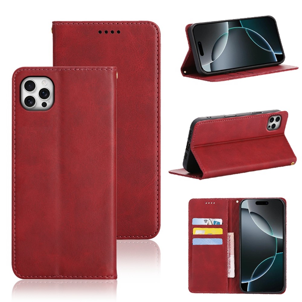 For iPhone 15 Pro Case Wallet Calf Texture Leather Phone Cover with Hidden Magnetic Closure – Red