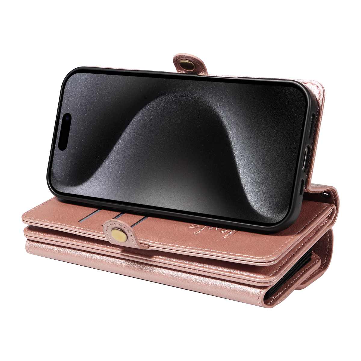 For iPhone 15 Pro Case YIKATU YK-008 Zipper Wallet Leather Phone Cover with Shoulder Strap - Rose Gold $27.77