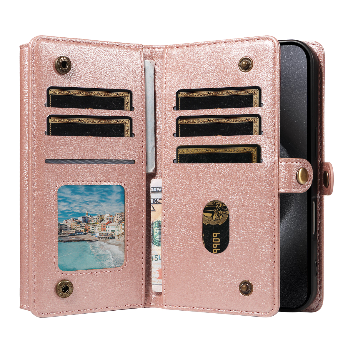 • Ample Storage Capacity Features 9 card slots, a zippered compartment, 4 cash compartments, and 5 accordion-style pockets for maximum organization