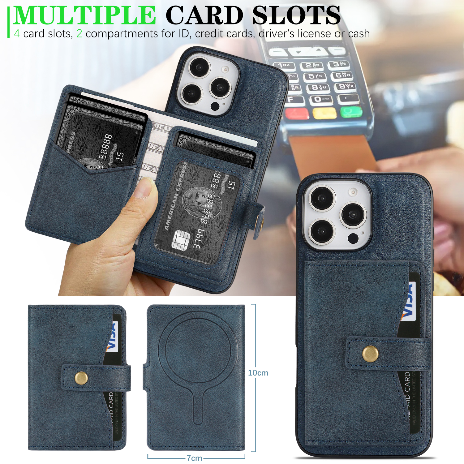 - Versatile Card Storage Multiple card slots accommodate IDs, credit cards, driver’s licenses, or cash, providing convenient all-in-one storage.