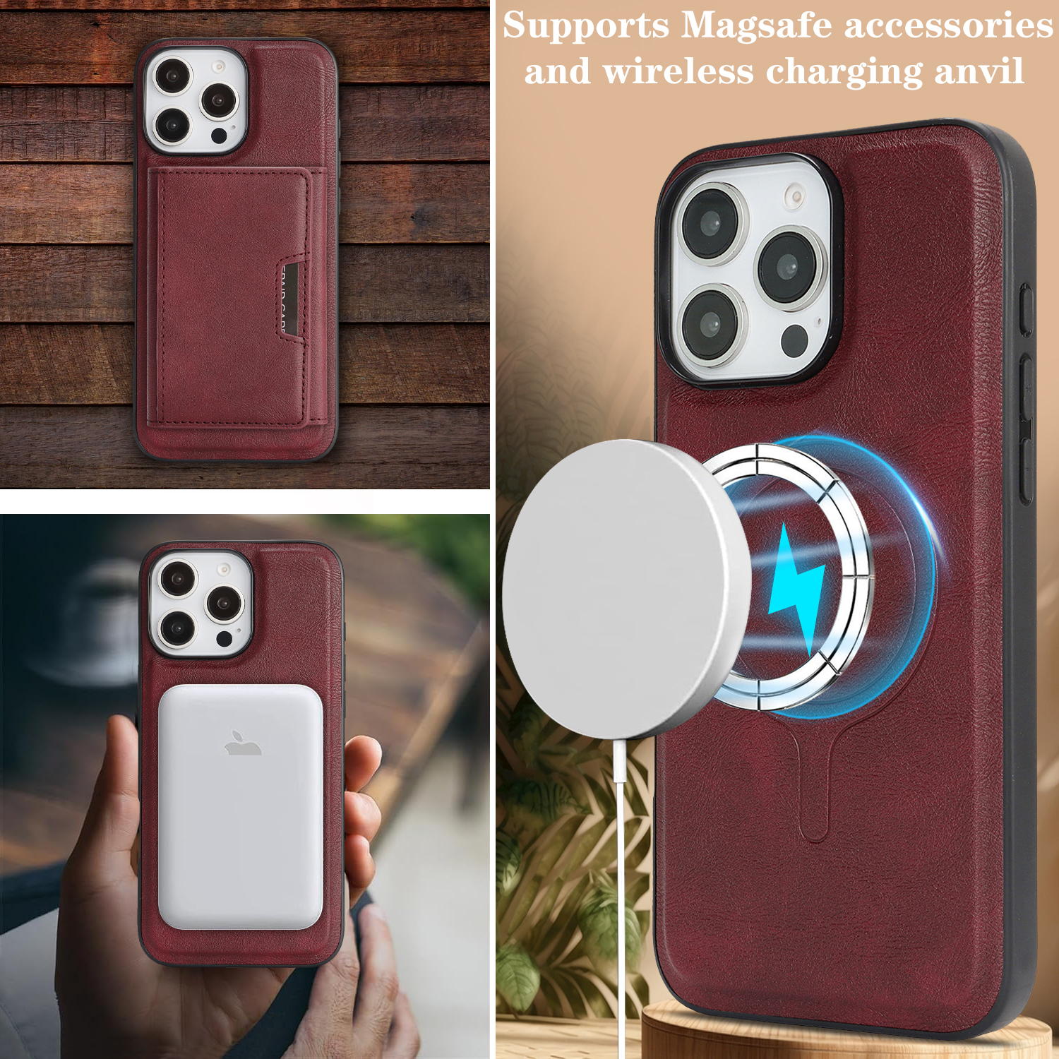 - MagSafe Compatible Supports for MagSafe accessories and wireless charging, featuring a minimalist magnetic leather bi-fold design with card holder functionality.