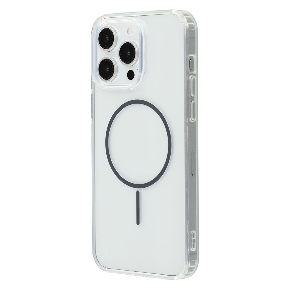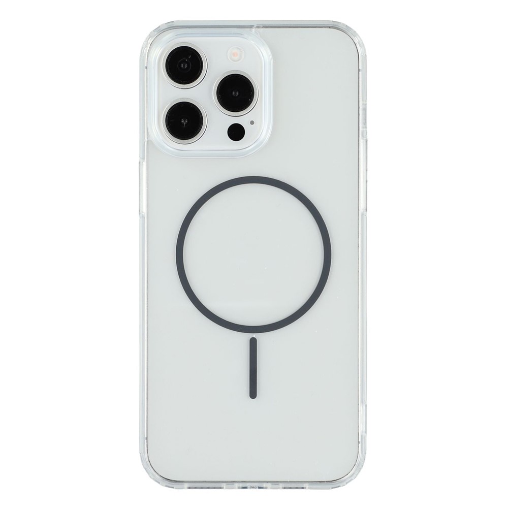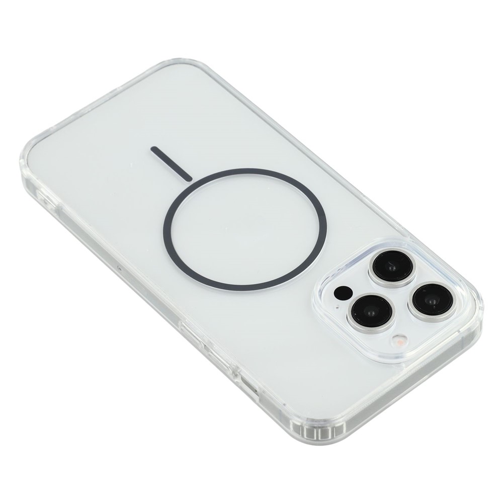 • For iPhone 15 Pro Magnetic Case Acrylic TPU Clear Phone Back Cover - White