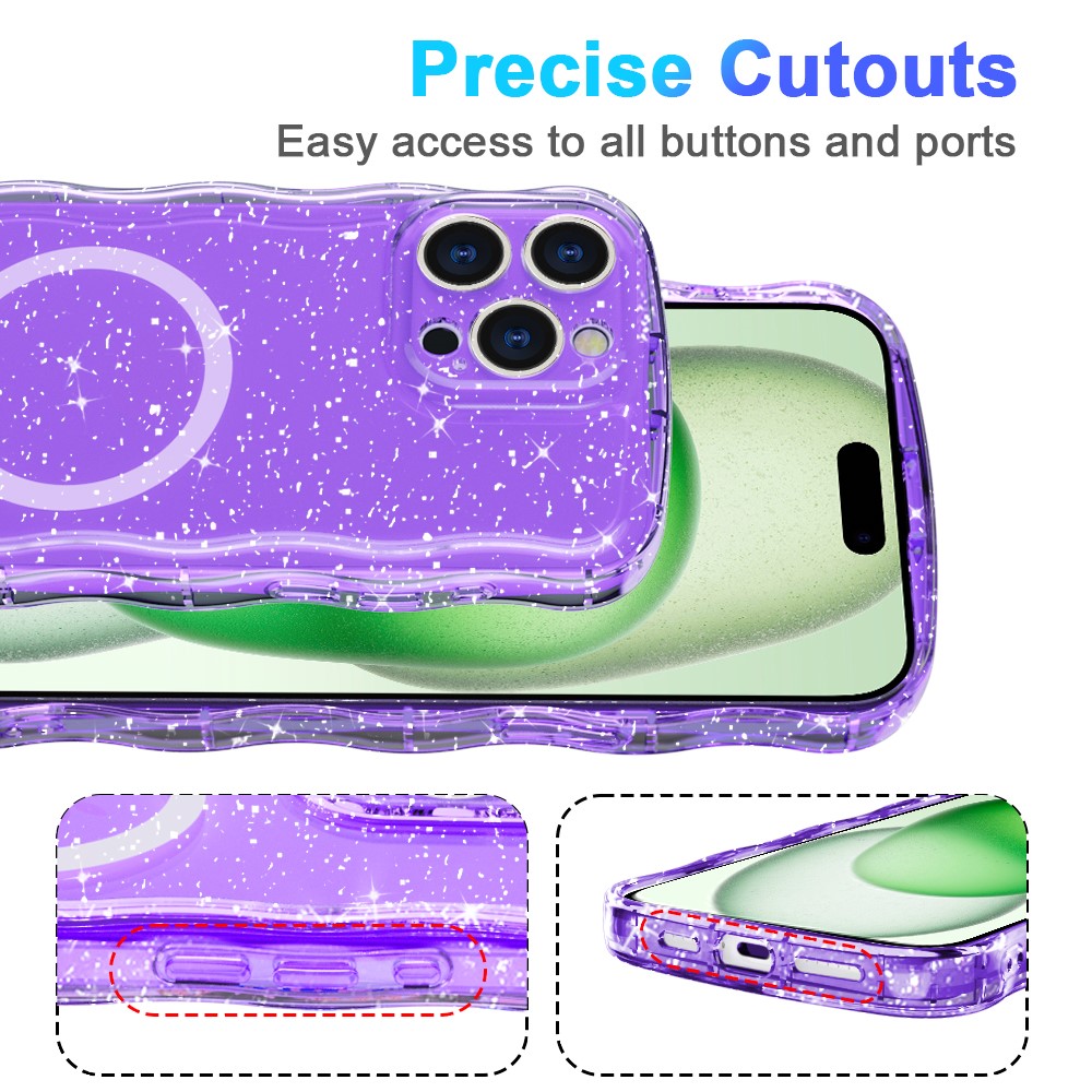 - Wave Edge Glitter Design Features a stylish wave-shaped frame with embedded glitter or vibrant patterns, adding a fashionable and eye-catching touch to your phone