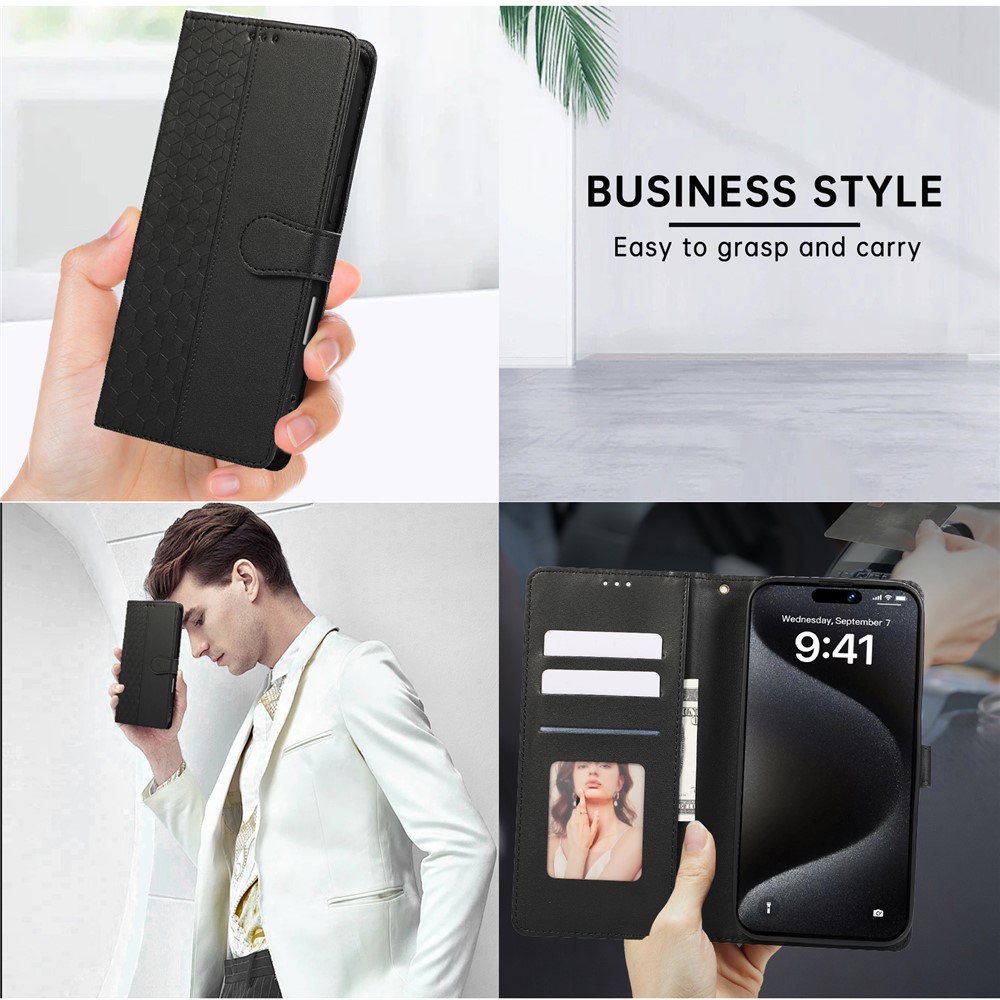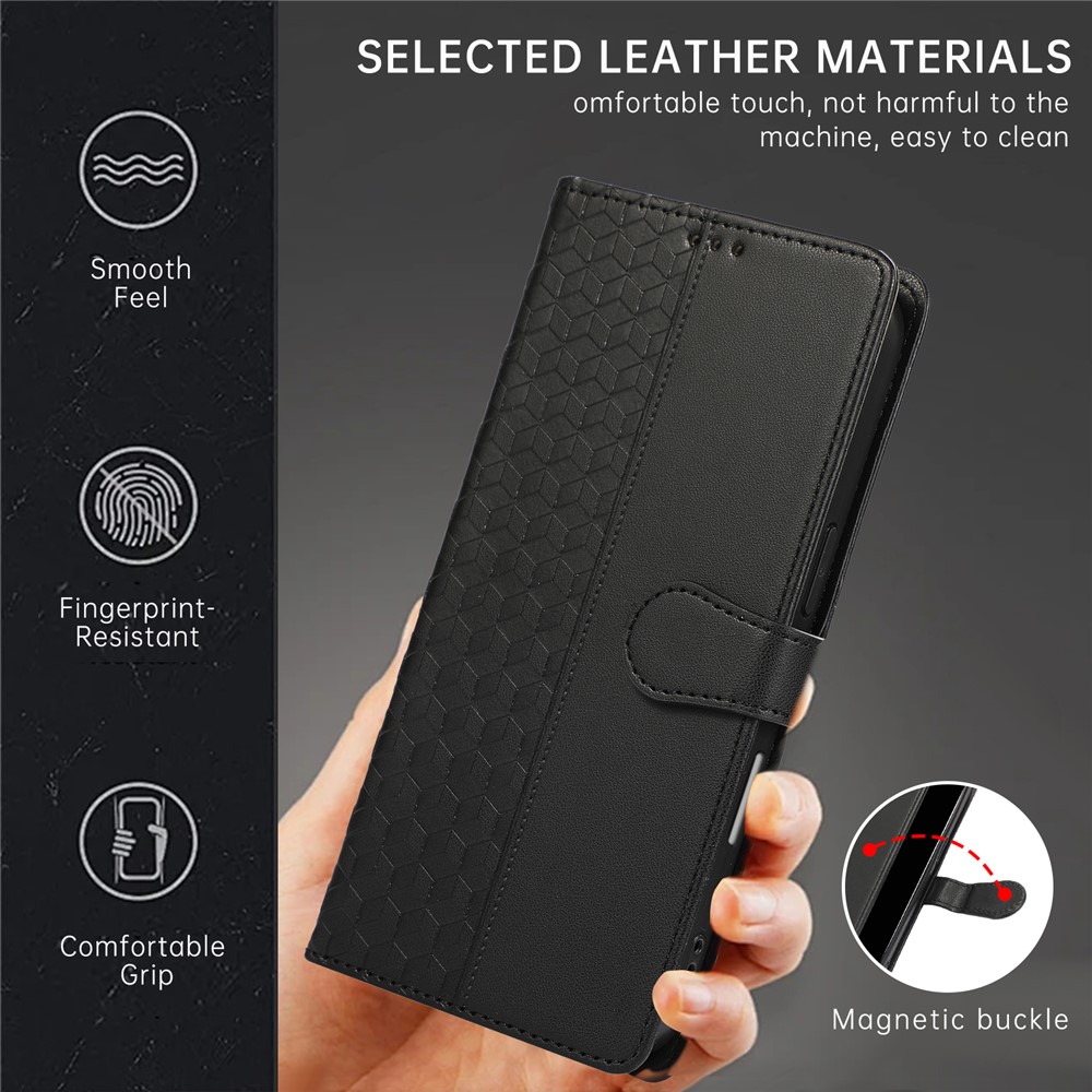 - Stylish 3D Rhombus Grid Design & Premium Material Features a 3D rhombus grid imprinted pattern, crafted from high-quality PU leather and durable TPU, combining luxurious feel with long-lasting durability