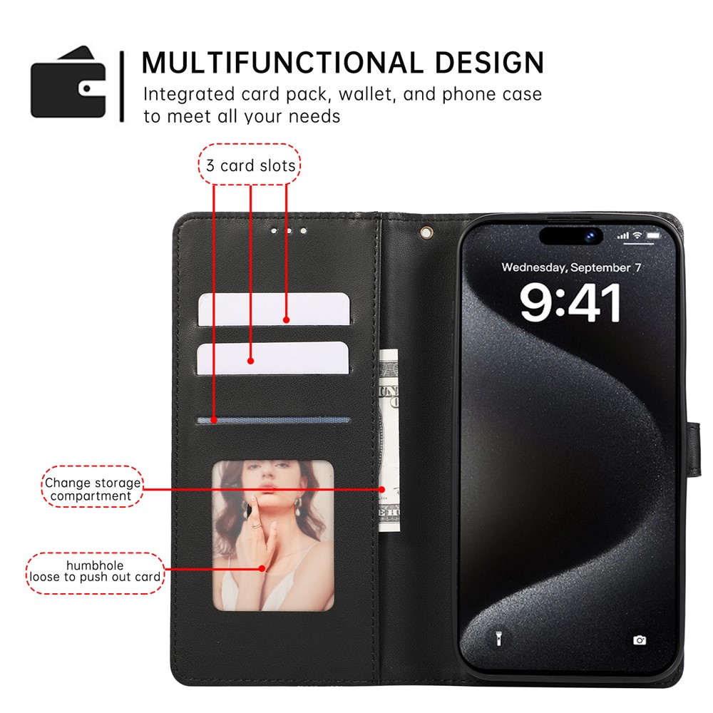 - Wallet Functionality Includes 3 card slots and a cash pocket, offering a convenient way to carry your essentials like cards and cash