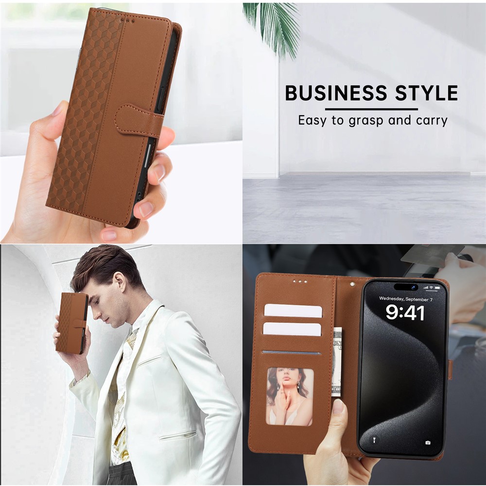- Stylish 3D Rhombus Grid Design & Premium Material Features a 3D rhombus grid imprinted pattern, crafted from high-quality PU leather and durable TPU, combining luxurious feel with long-lasting durability