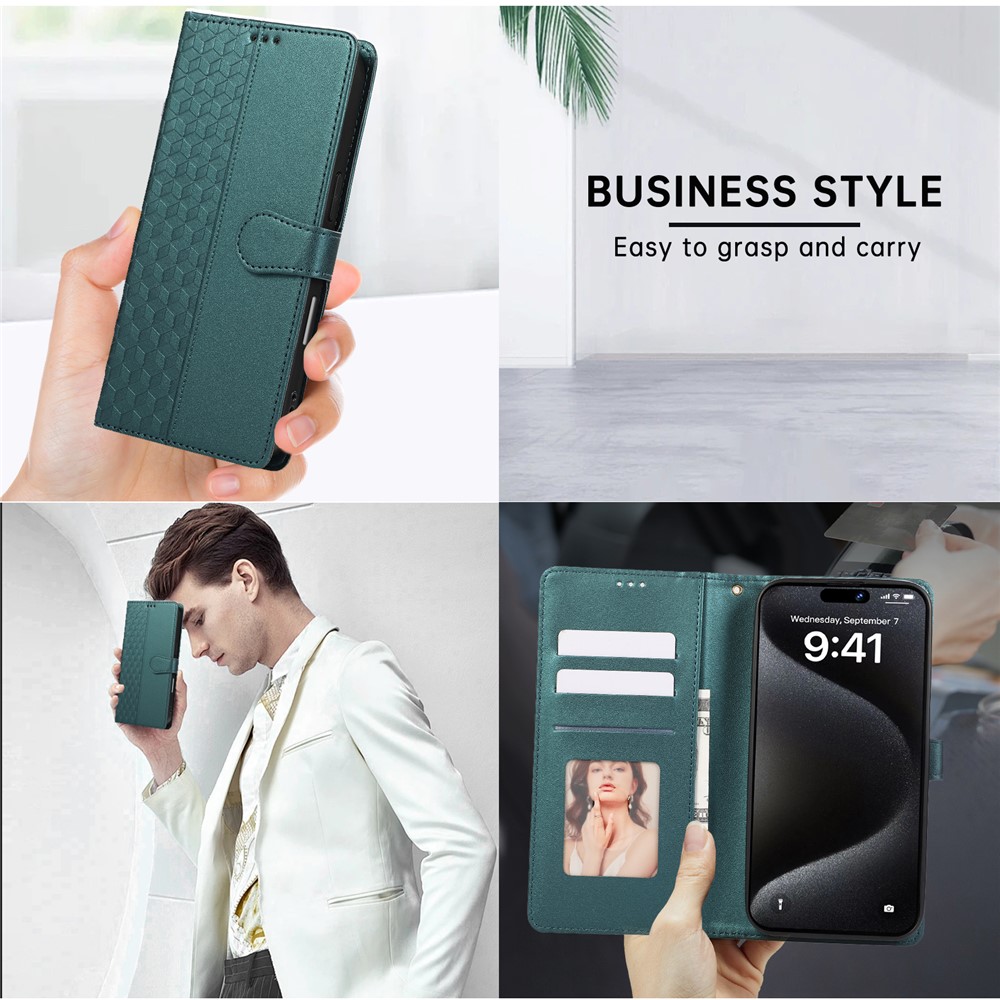- Stylish 3D Rhombus Grid Design & Premium Material Features a 3D rhombus grid imprinted pattern, crafted from high-quality PU leather and durable TPU, combining luxurious feel with long-lasting durability