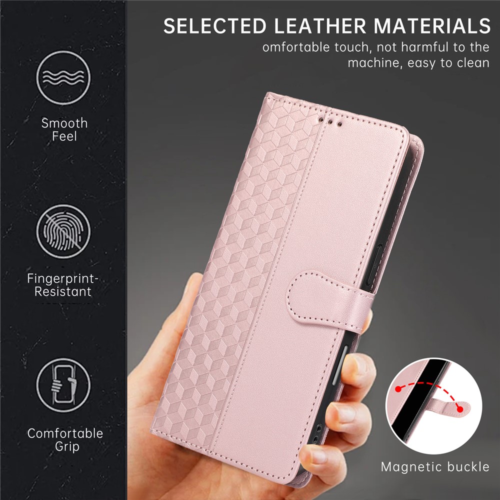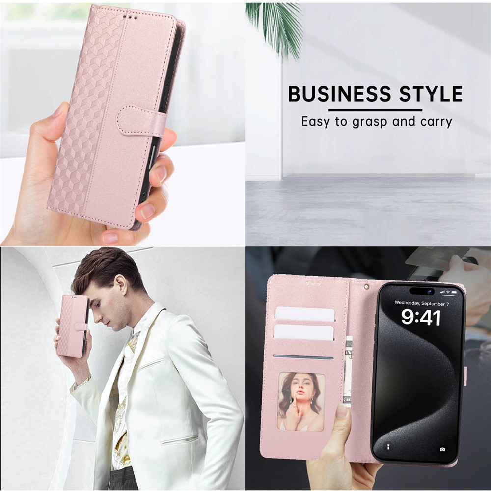 - Stylish 3D Rhombus Grid Design & Premium Material Features a 3D rhombus grid imprinted pattern, crafted from high-quality PU leather and durable TPU, combining luxurious feel with long-lasting durability