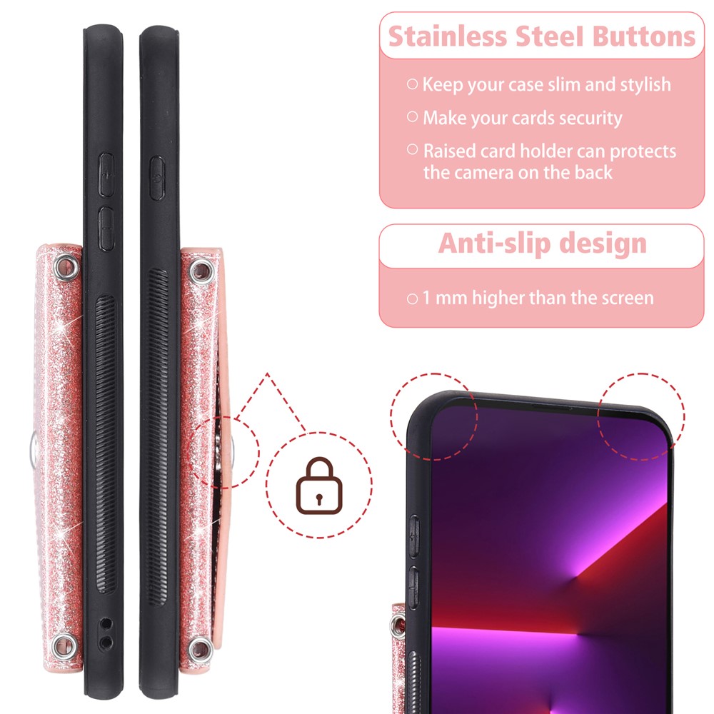 - Glamorous Glitter Design Features a TPU interior and shimmering glitter PU leather exterior that adds sparkle and style, perfect for fashion lovers who want both elegance and protection.