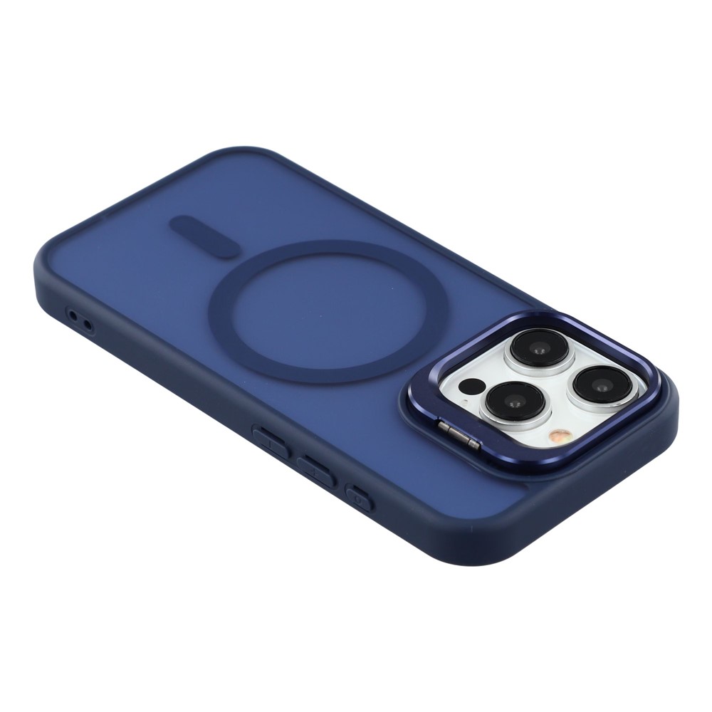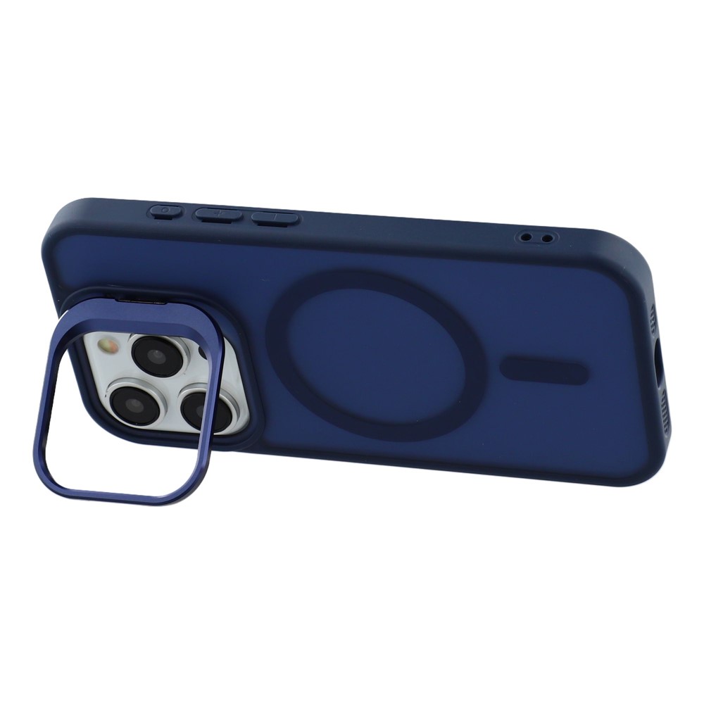 For iPhone 15 Pro Max Case Compatible with MagSafe Lens Kickstand TPU + PC Matte Phone Cover - Dark Blue