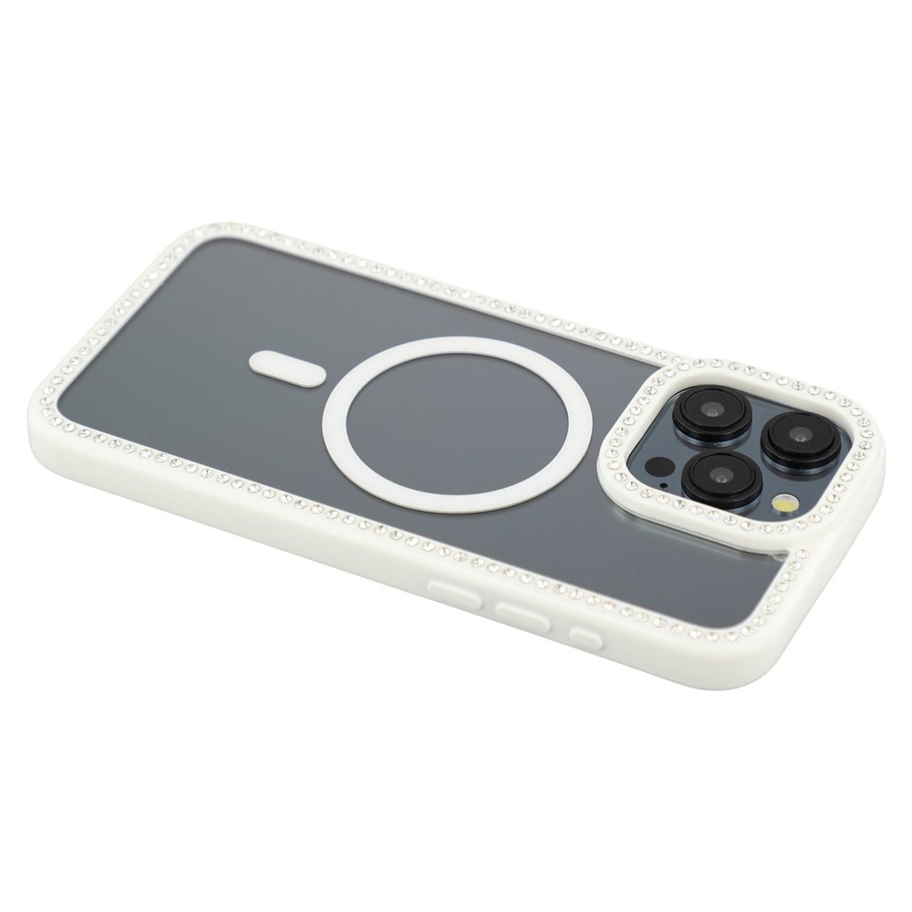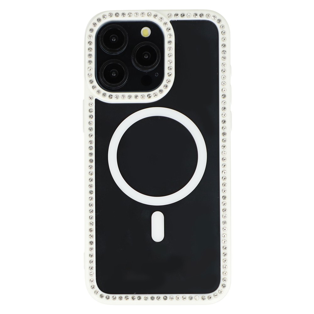 - Sparkling Rhinestone Accents Elegant rhinestones adorn the frame and camera bezel for a glamorous, eye-catching aesthetic that shines in any light