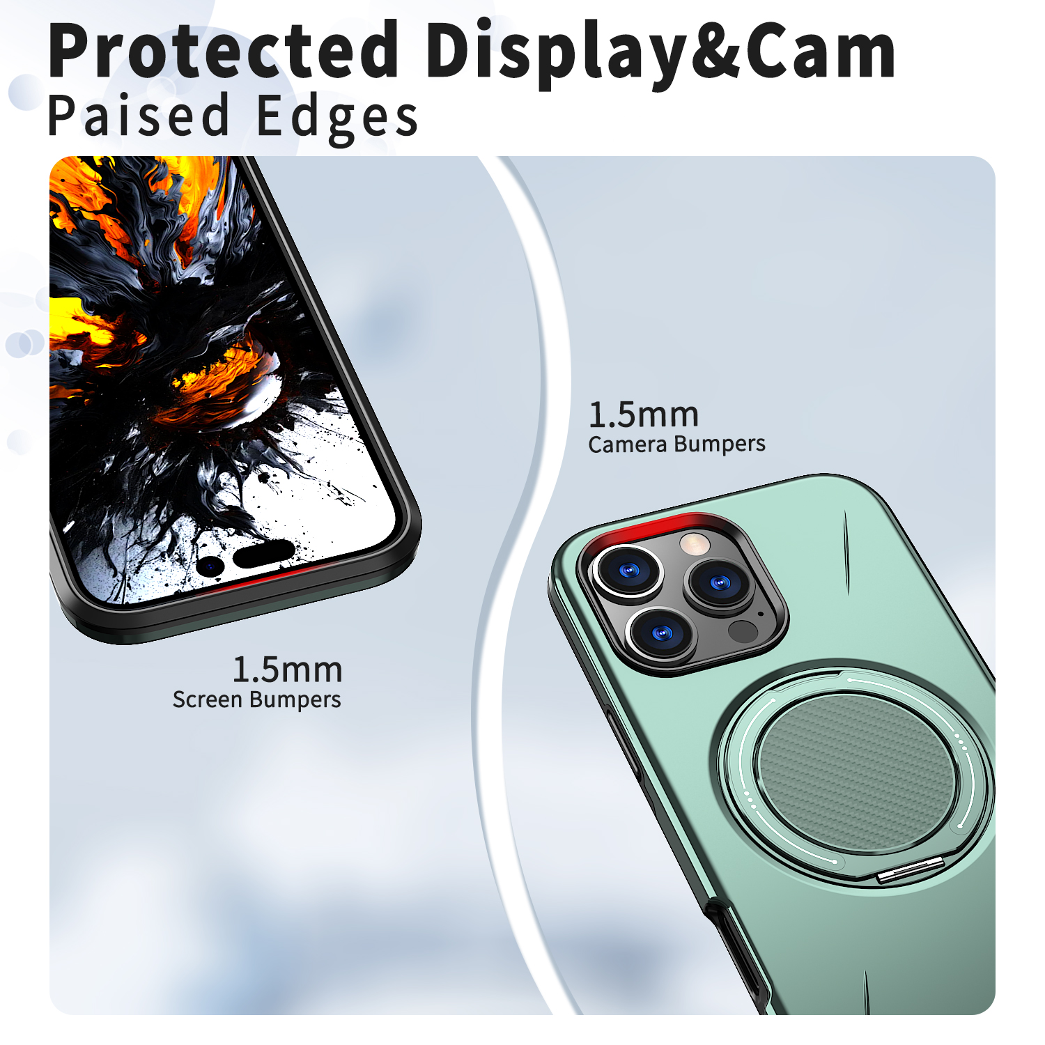 For iPhone 15 Pro Max Case Compatible with MagSafe TPU + PC Back Cover with Rotating Kickstand – Green