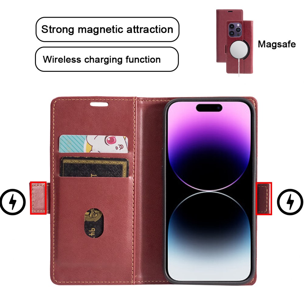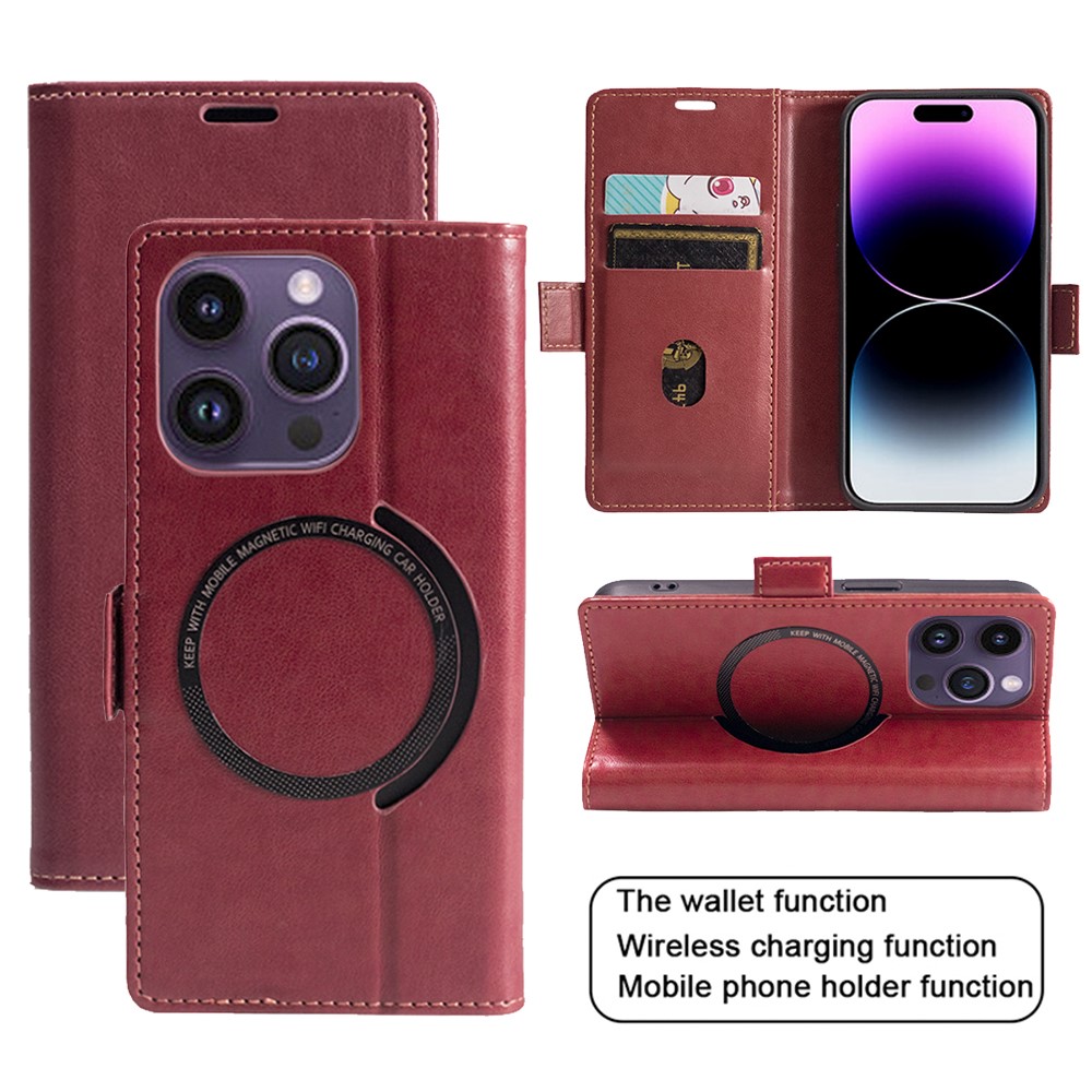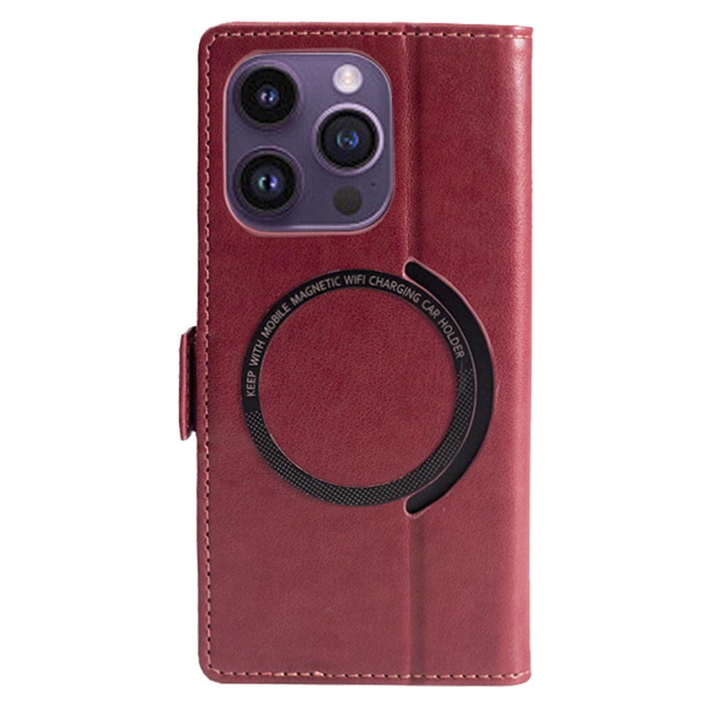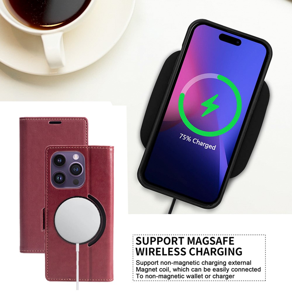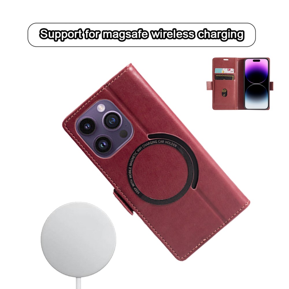 For iPhone 15 Pro Max Case Compatible with MagSafe Wallet Stand Leather Flip Phone Cover - Red
