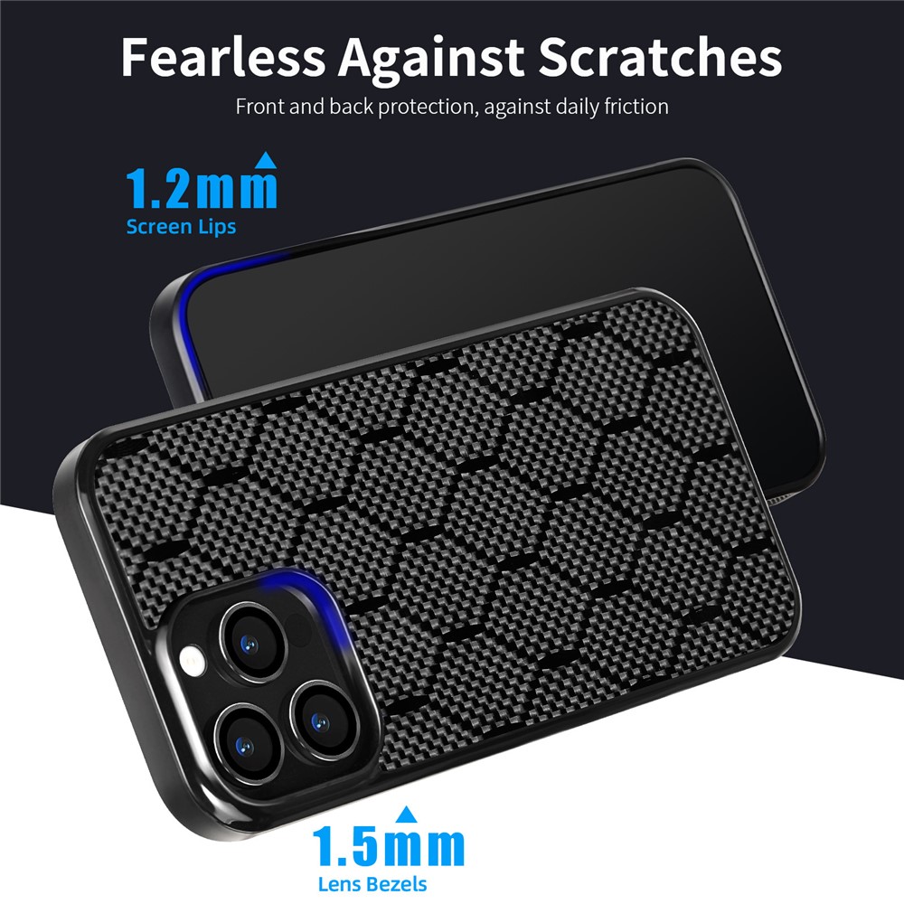 For iPhone 15 Pro Max Case Honeycomb Pattern Aramid Fiber + TPU Shockproof Phone Cover