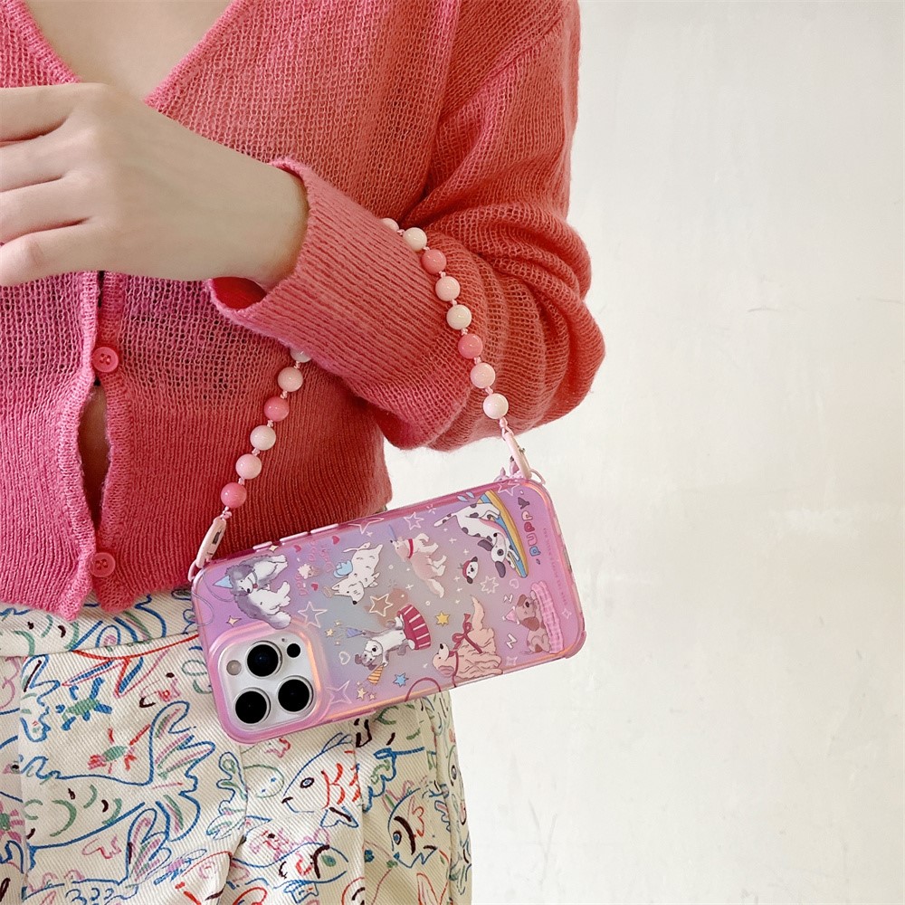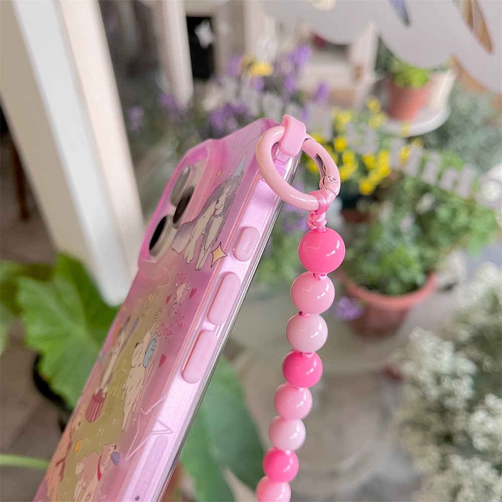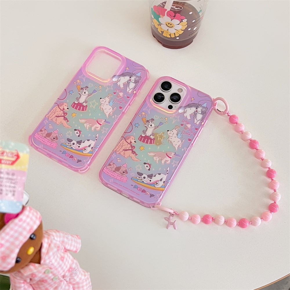 For iPhone 15 Pro Max Case IMD Cartoon Dogs TPU Phone Cover with Beaded Strap