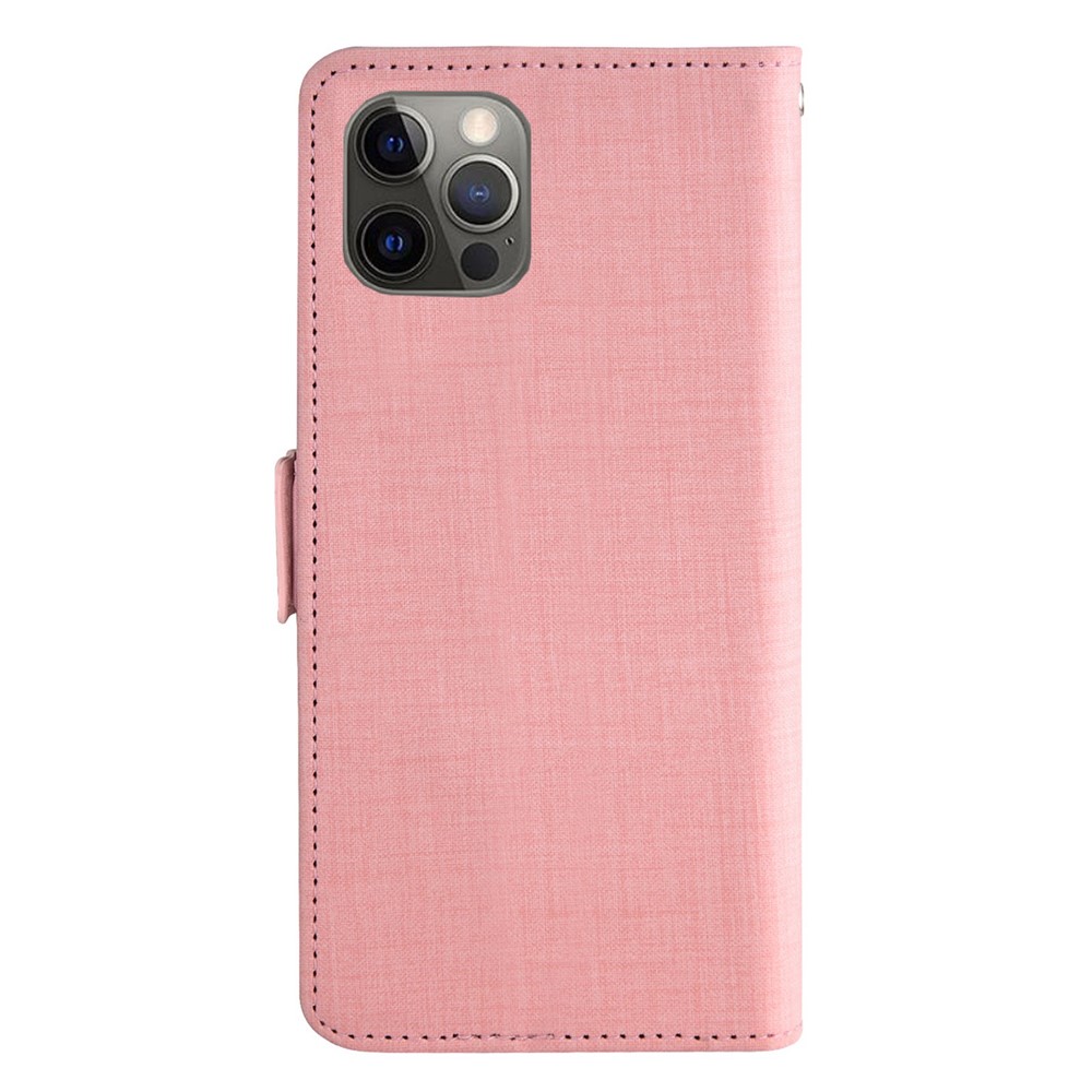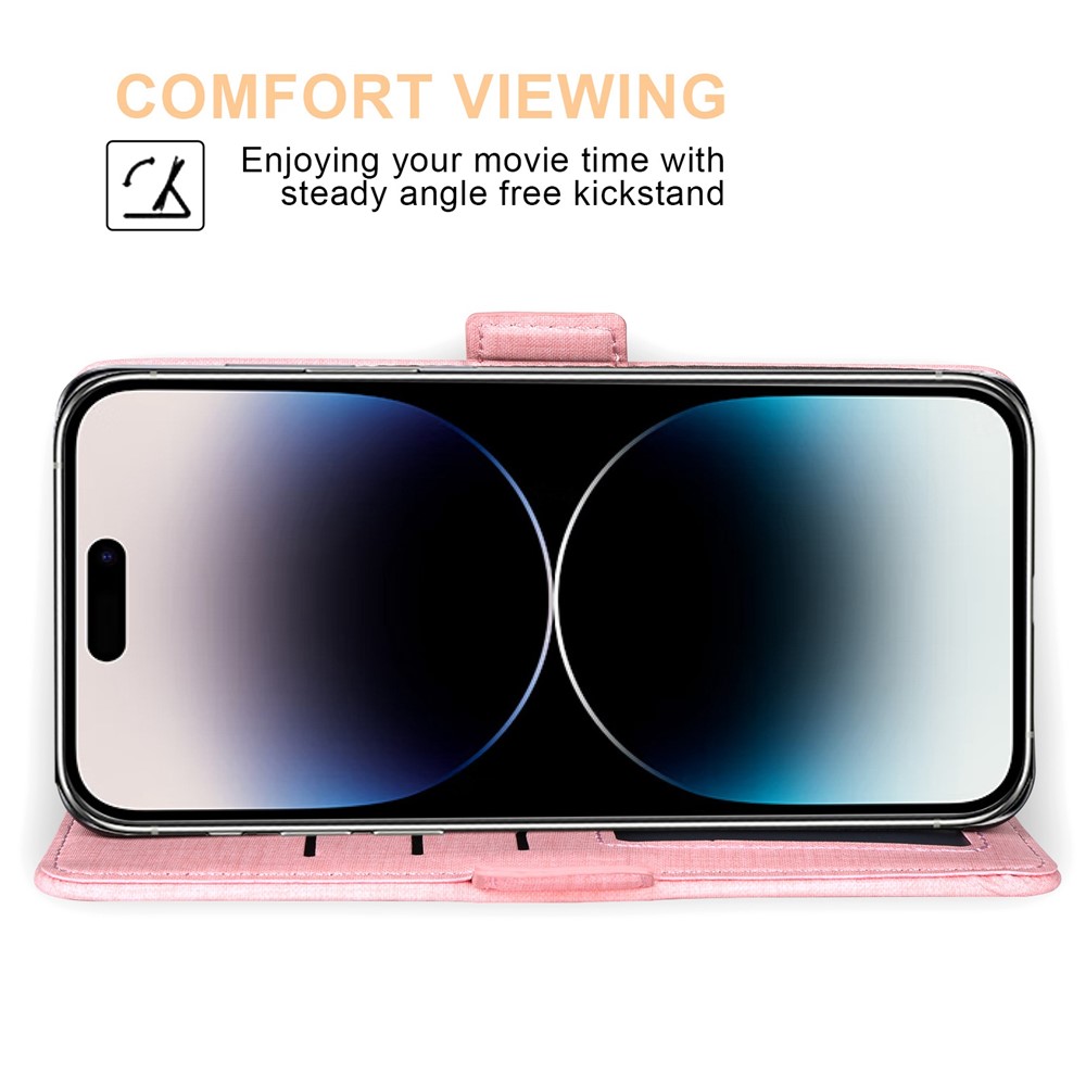 For iPhone 15 Pro Max Case Jean Cloth Texture PU Leather Wallet Phone Cover with Rotating Card Slots – Pink