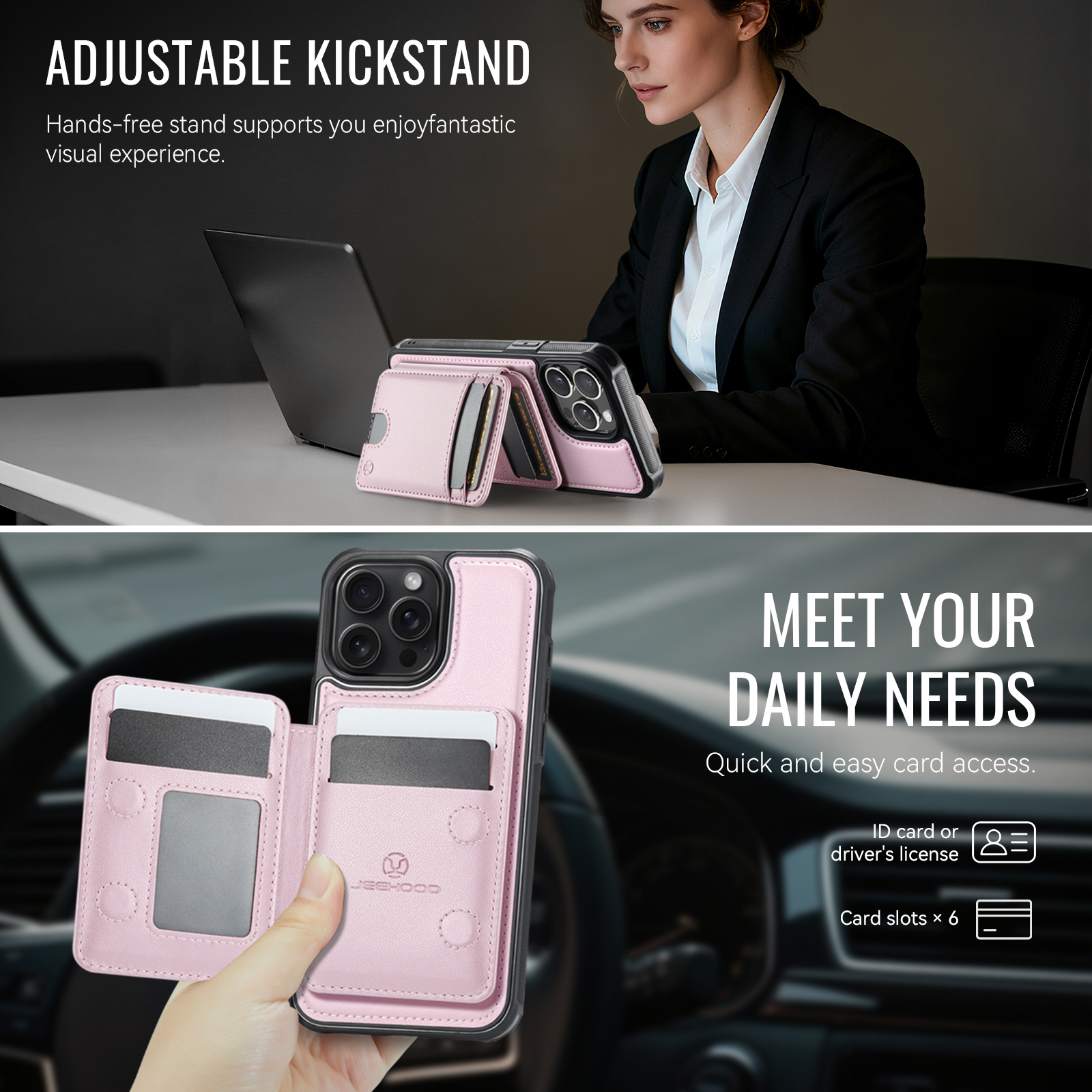 - Adjustable Kickstand The card holder doubles as a kickstand, providing multiple viewing angles for hands-free entertainment or work.