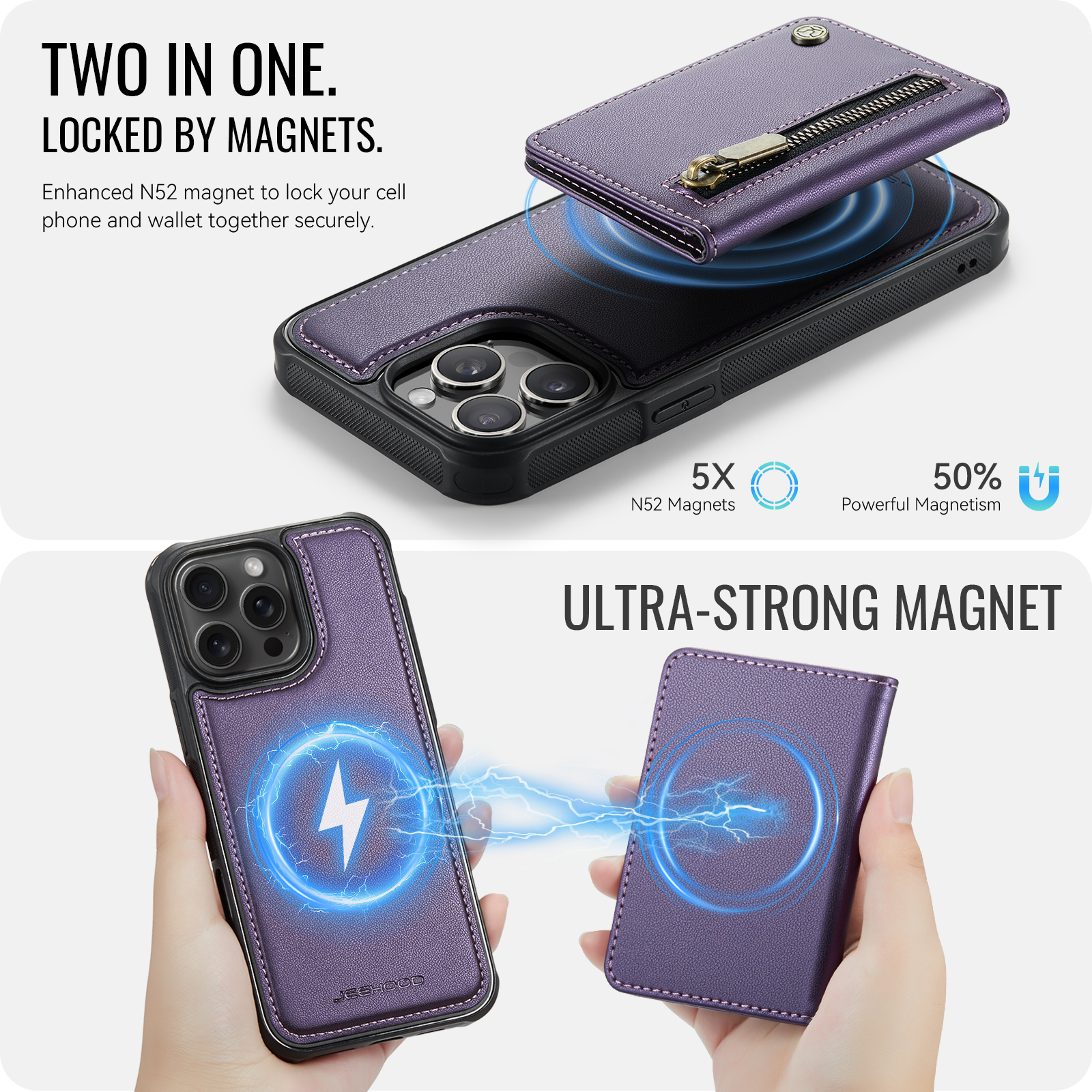 - Detachable Magnetic Design The card wallet and phone case can be magnetically attached or detached, and can be used separately.